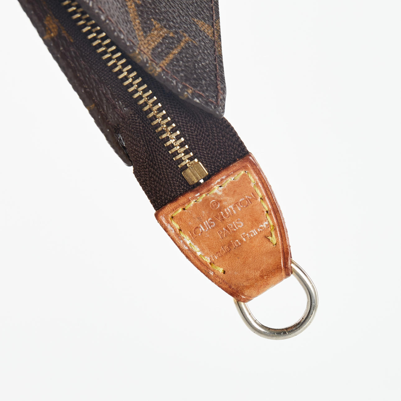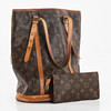 Mått 35 x 27 x 20 cm. Monogramcanvas med detaljer i brunt skinn samt gulmetall. Reglerbara handtag. Två innefack, varav ett med dragkedja. Portmonä medföljer samt dustbag.