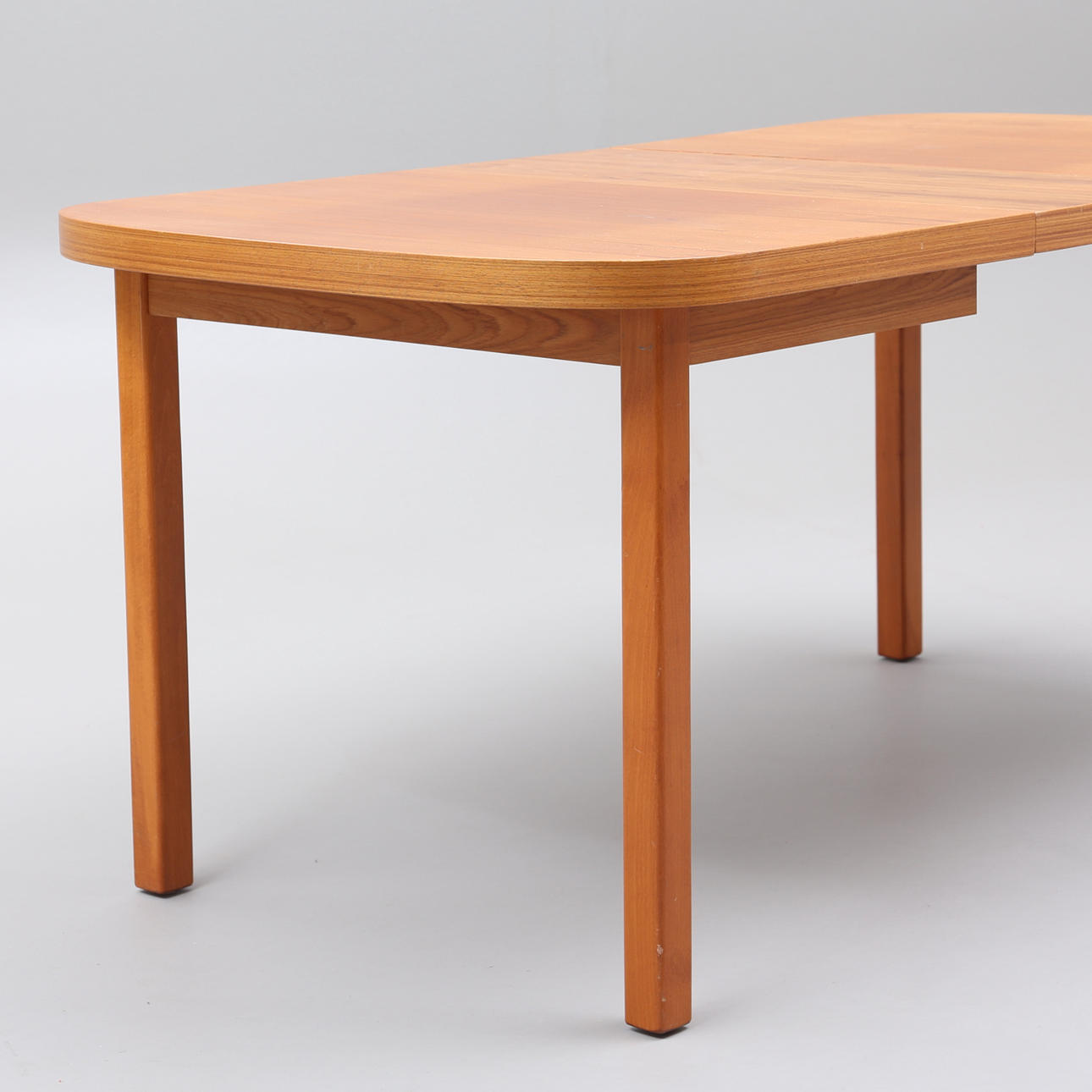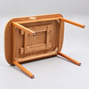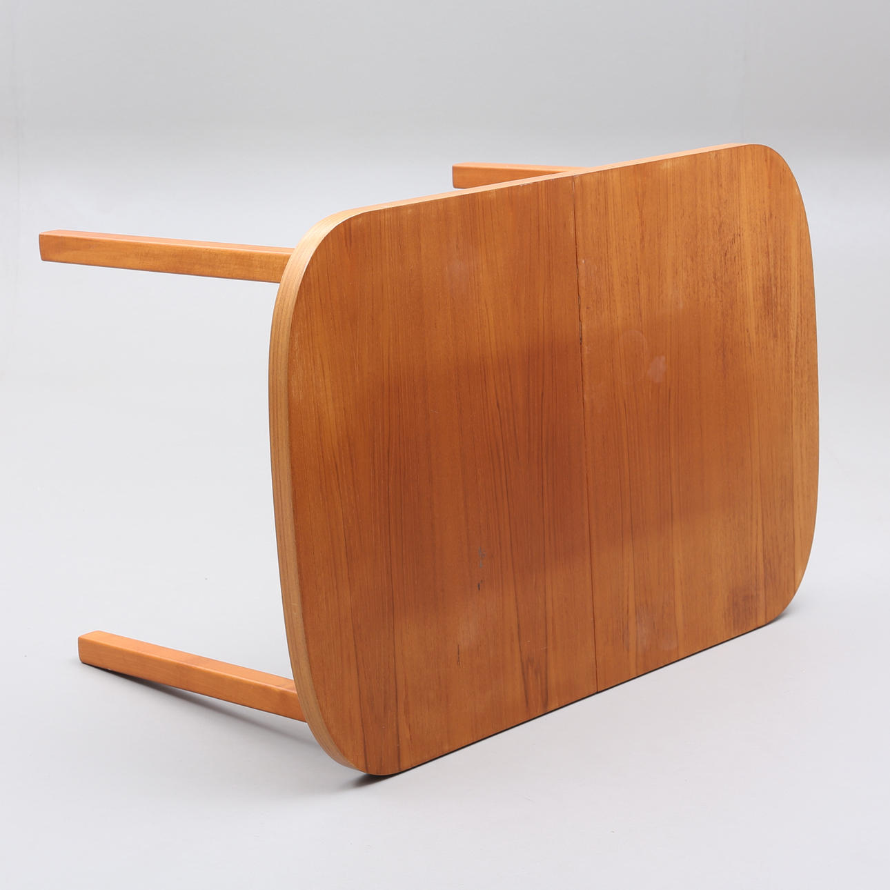 Märken, fläckar, skiva delvis solblekt. Fanérskador på bordsskiva.