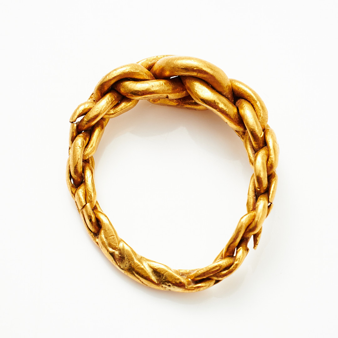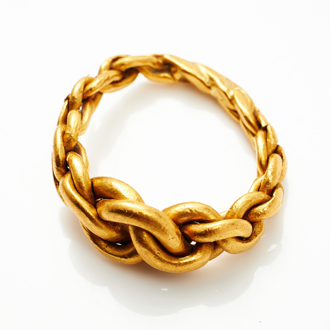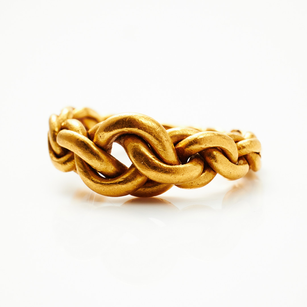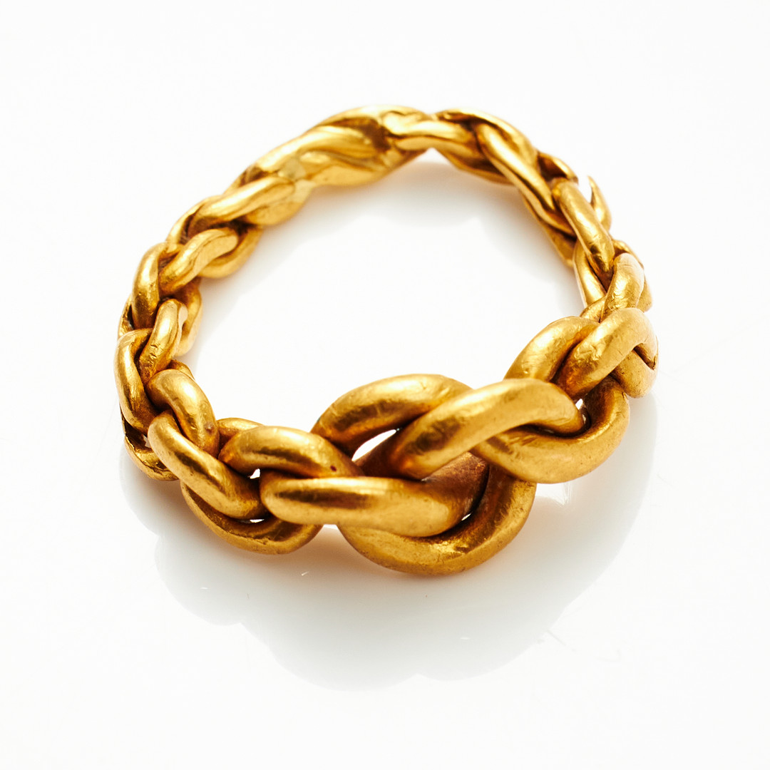 2677092. RING, 23 k guld, flätad, ostämplad.