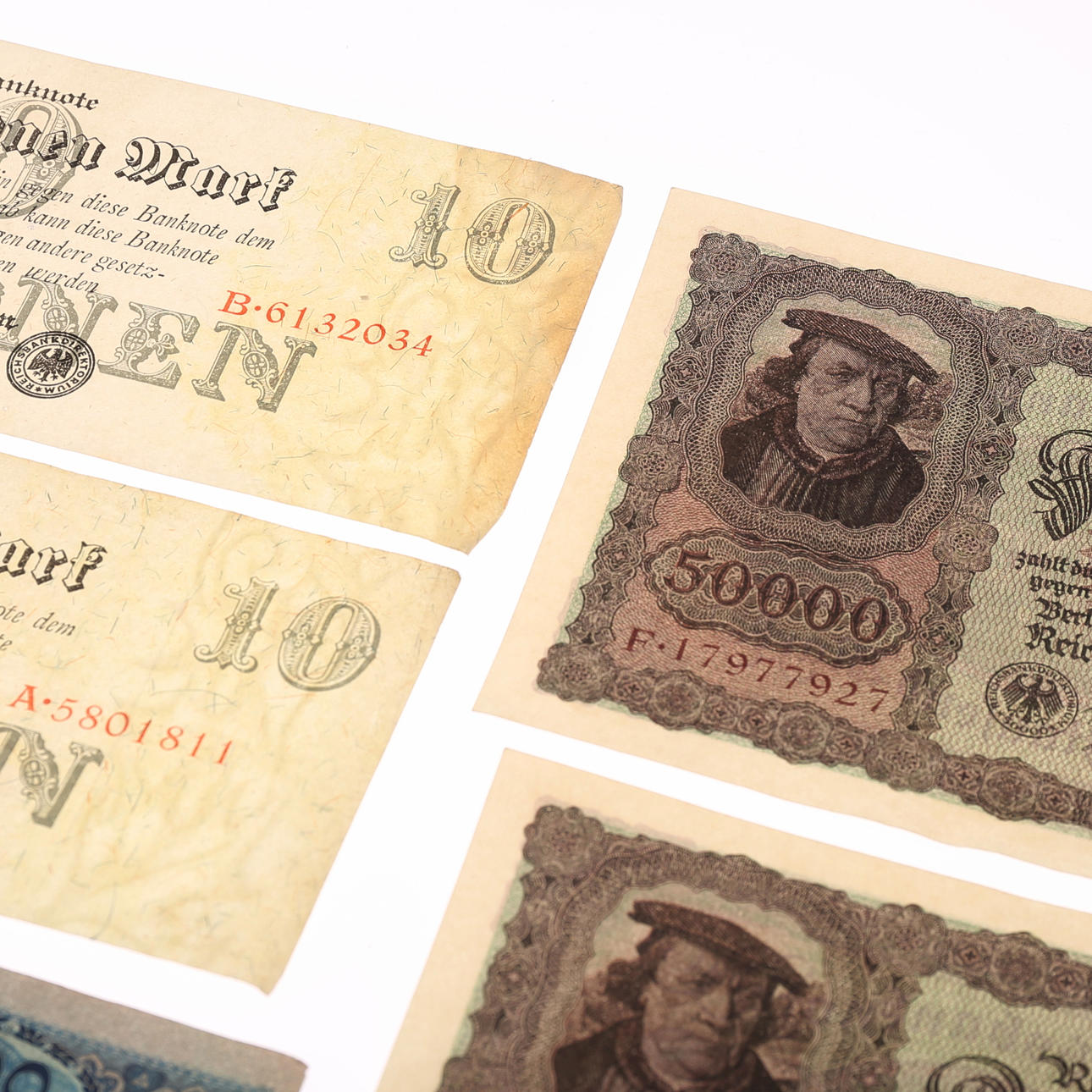 2 st Reichsbanknote 50 tusen Mark, november 1922, ovikta i nummerföljd.