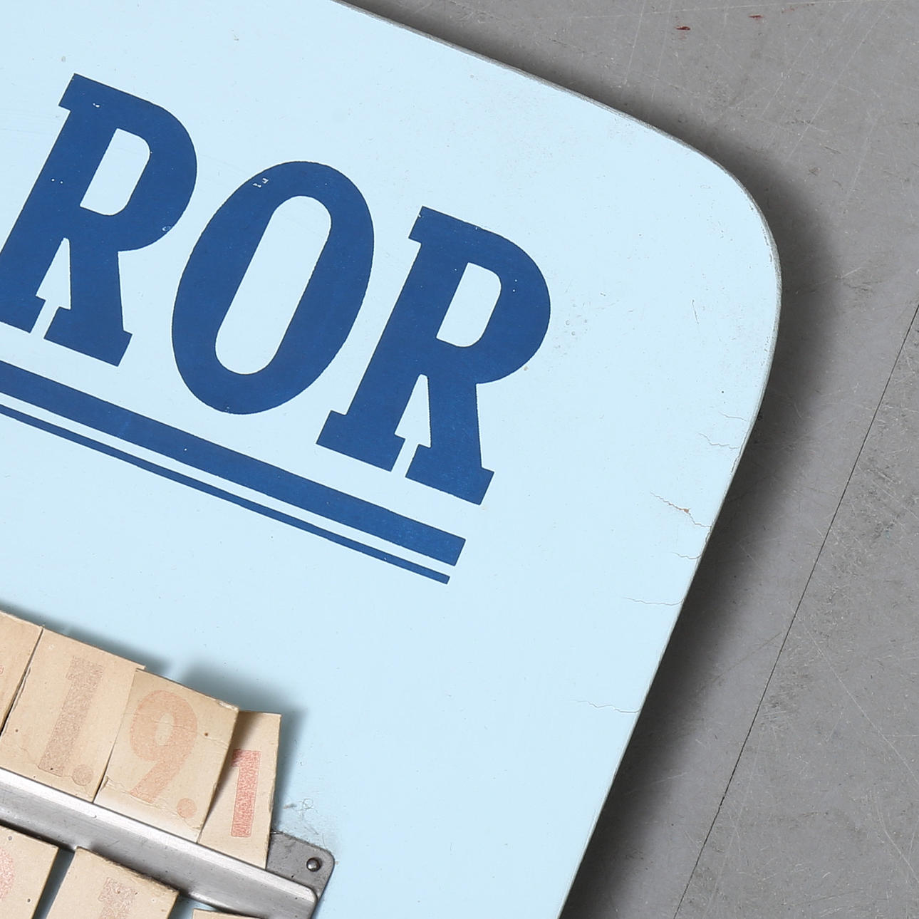 Slitage, märken, smärre sprickor, siffertyper delvis saknade.