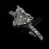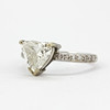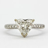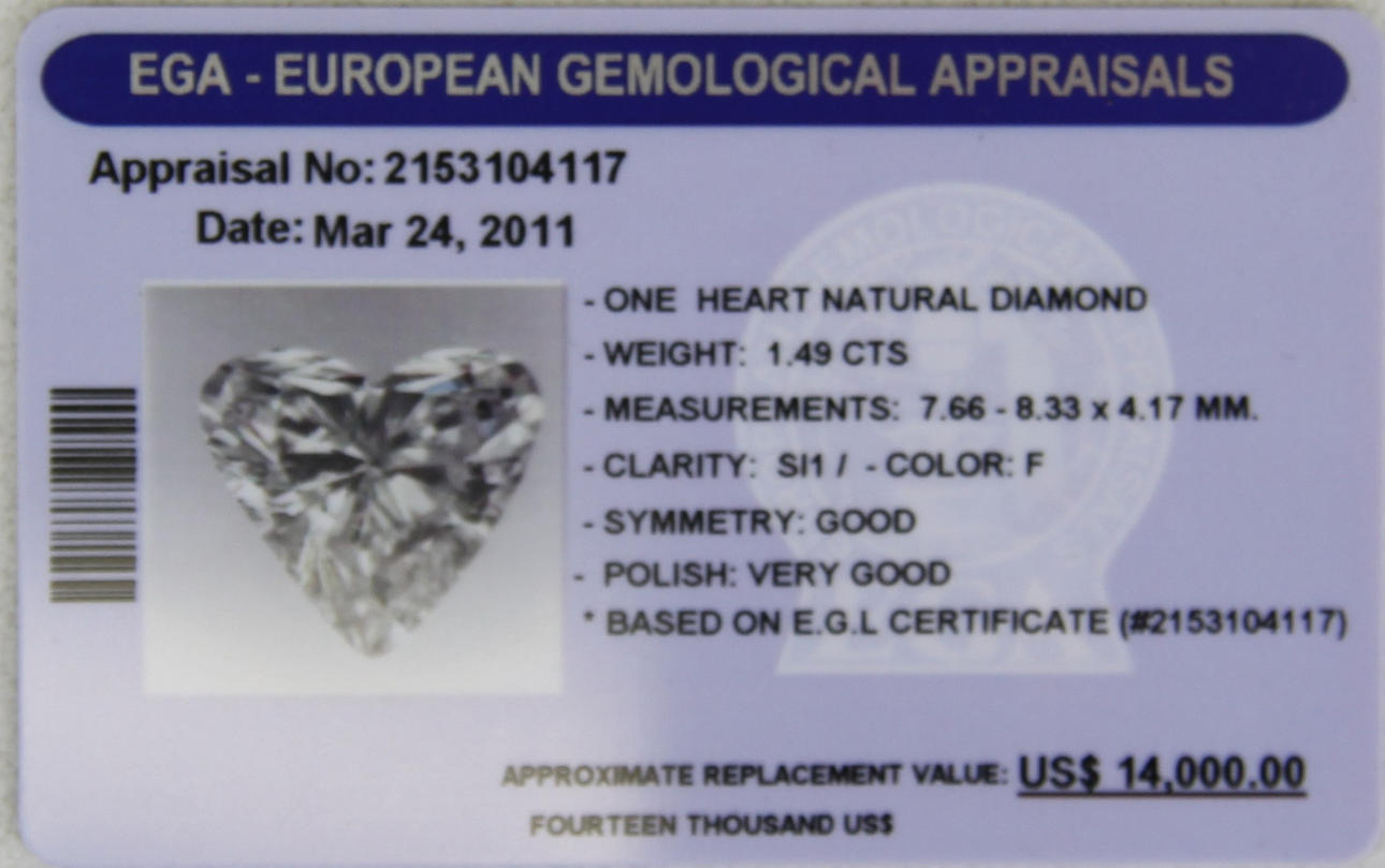 Ring 14K vitguld med en hjärtslipad diamant med diamant som axlar, ring storlek J.5. med E.G.L International diamantcertifikat.