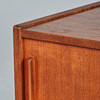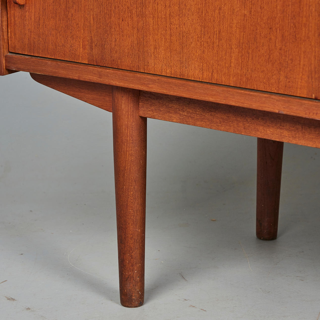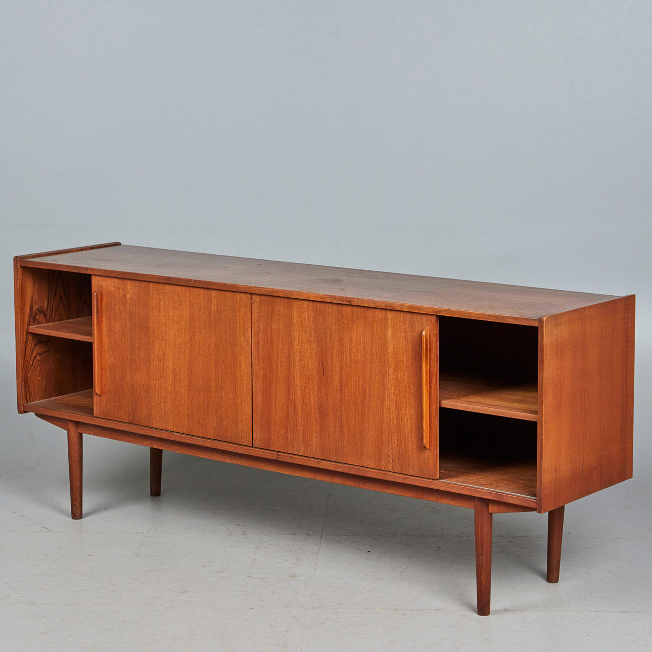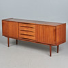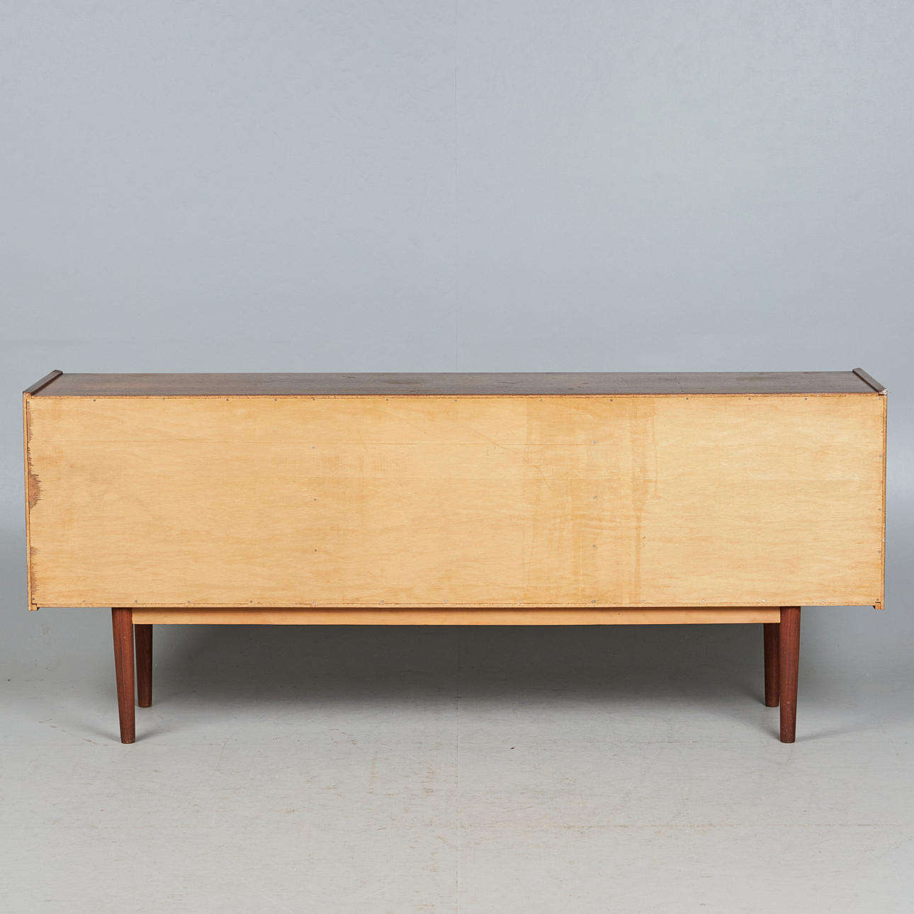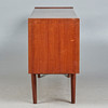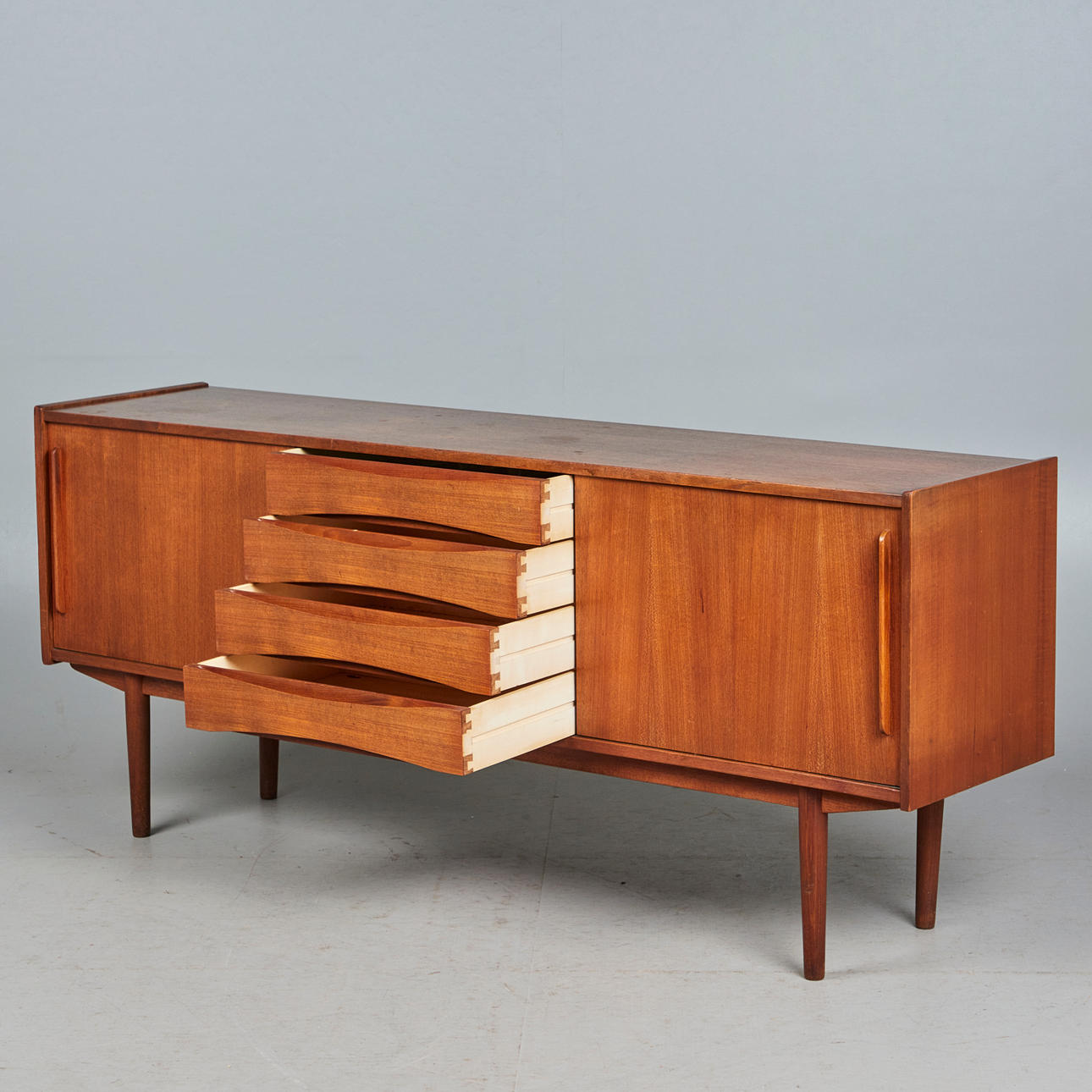 Sideboard/byrå, teak, 1960-tal. Glaserad teakskänk med rektangulär kropp och skjutdörrar, utrustade med fyra lådor i mitten, översta lådan dekorerad med grön filt, med två hyllor på insidan, var och en med två hyllor, H.80cm, L.190cm, W.45cm.