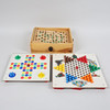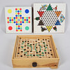 Kula till labyrint saknas. 2 gröna kulor saknas i kinaschack. I övrigt komplett.