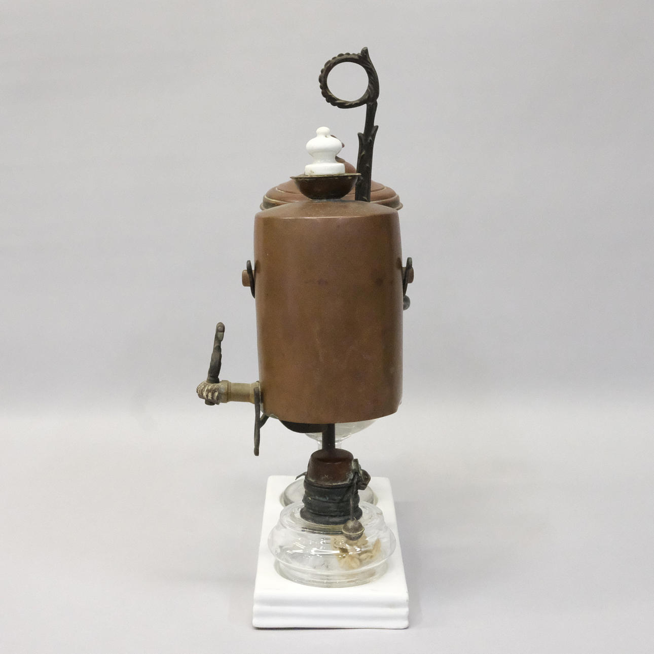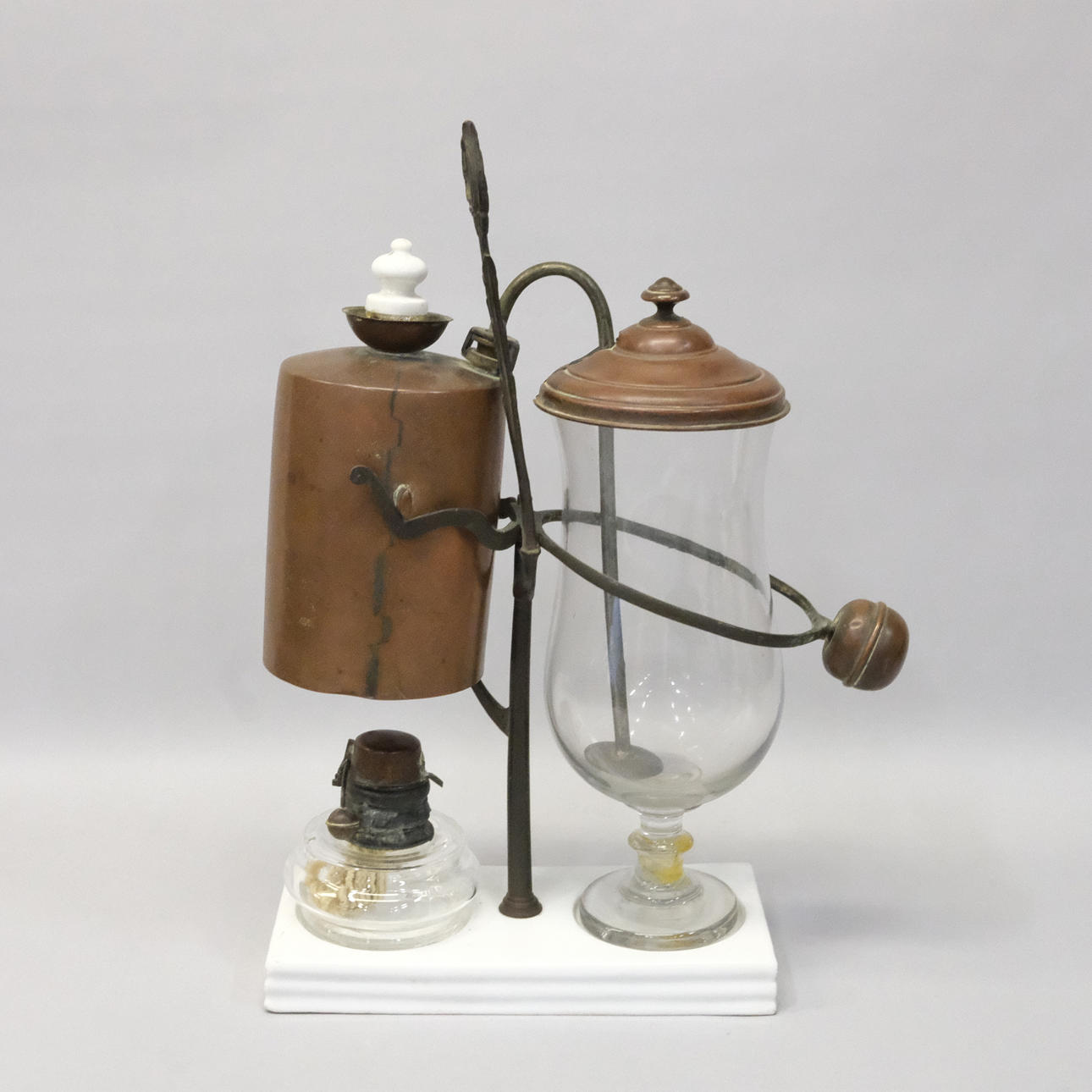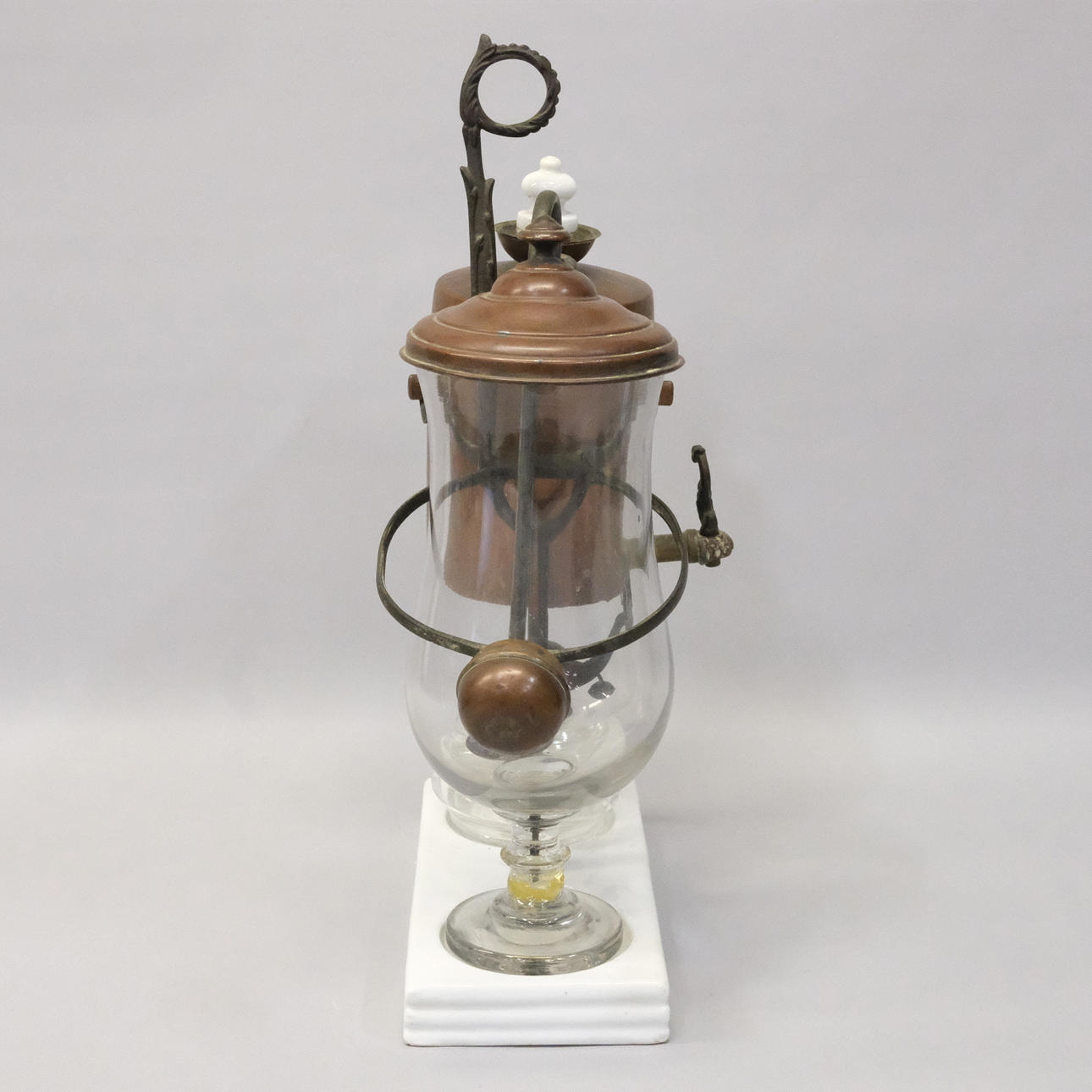 I glas och koppar, sannolikt Belgien, höjd 39cm.