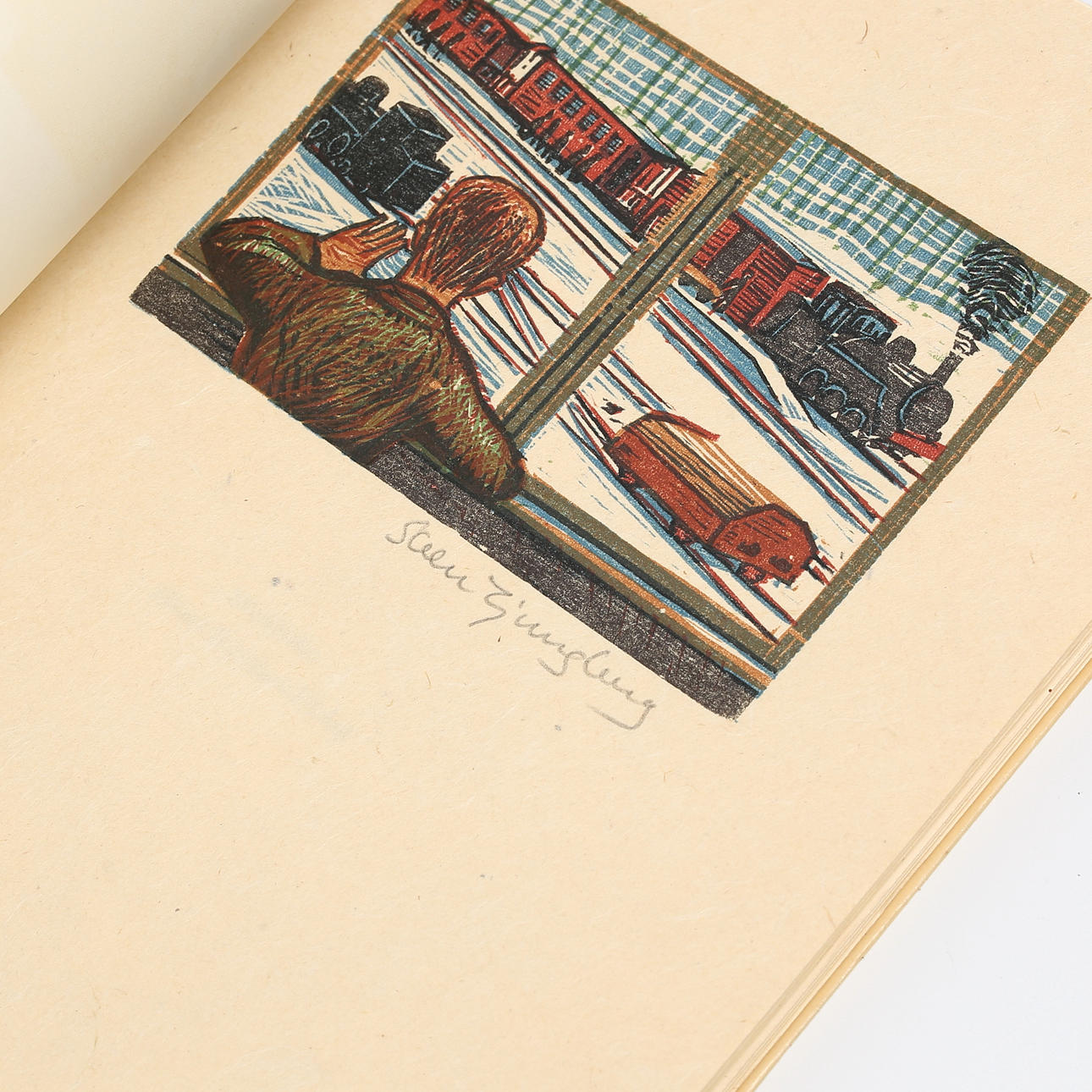 Pär Lagerkvist, Gäst hos Verkligheten, signerat träsnitt av Sven Ljungberg.