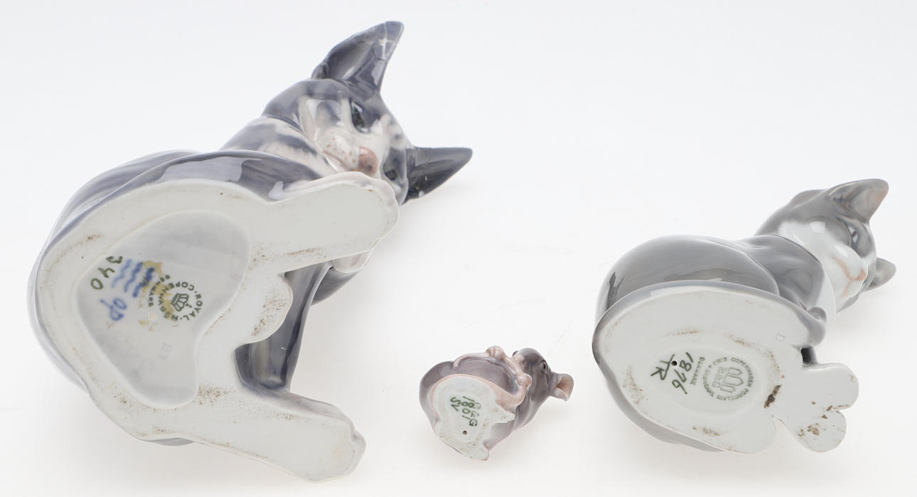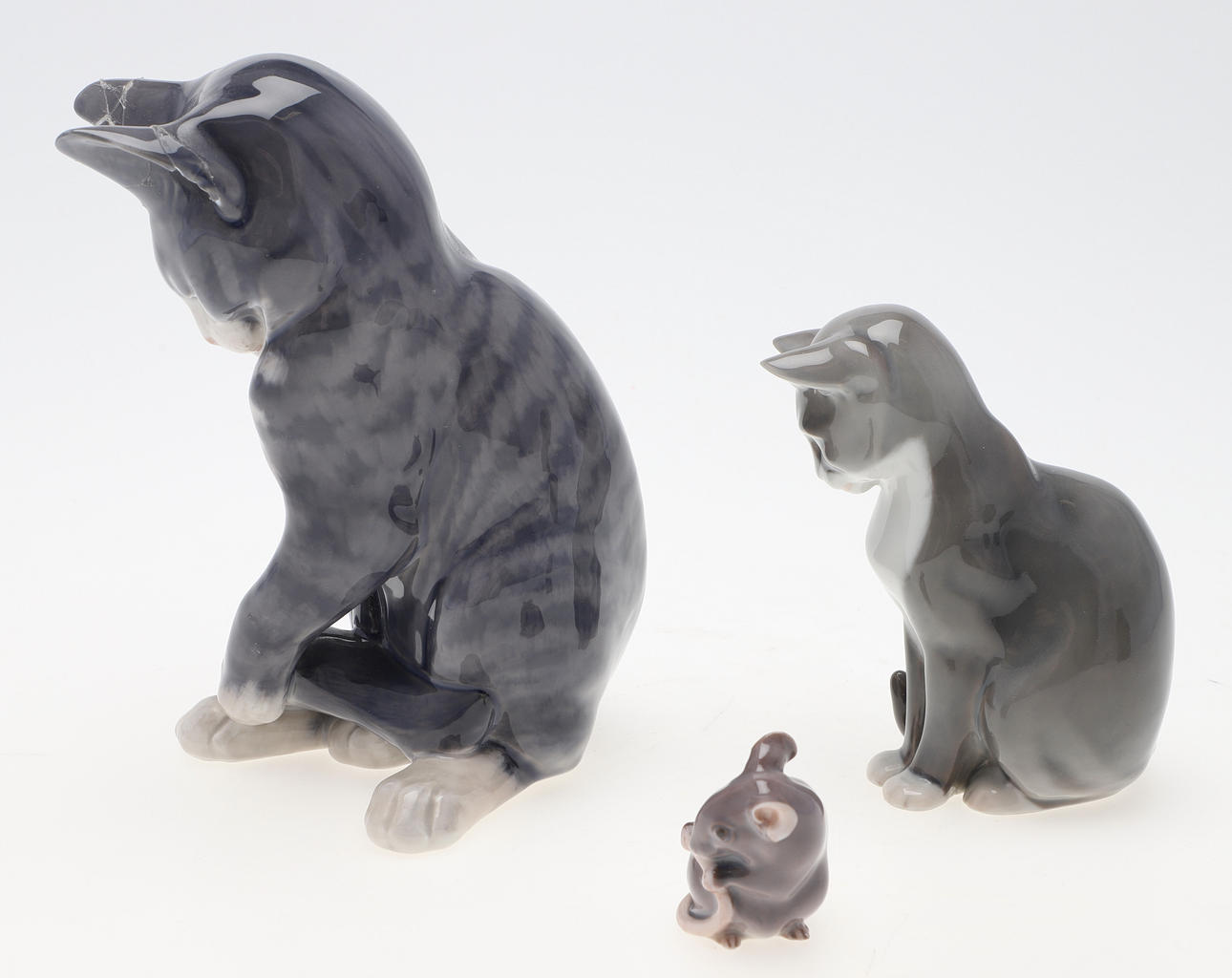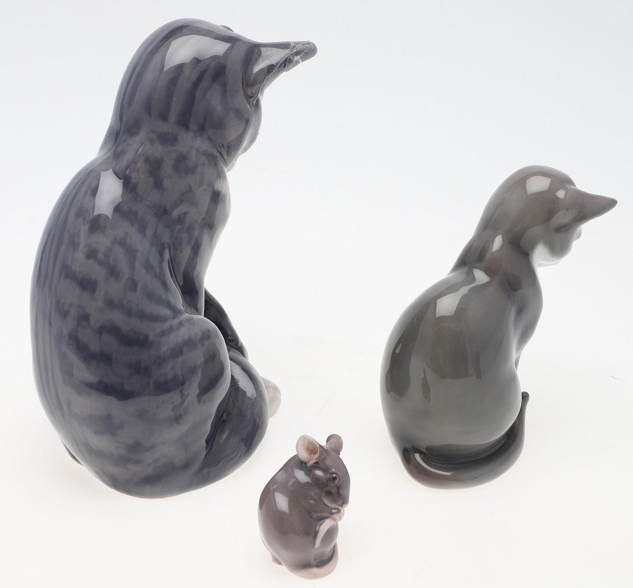 2694769. FIGURINER, 3 st, katt & mus, porslin, Danmark.