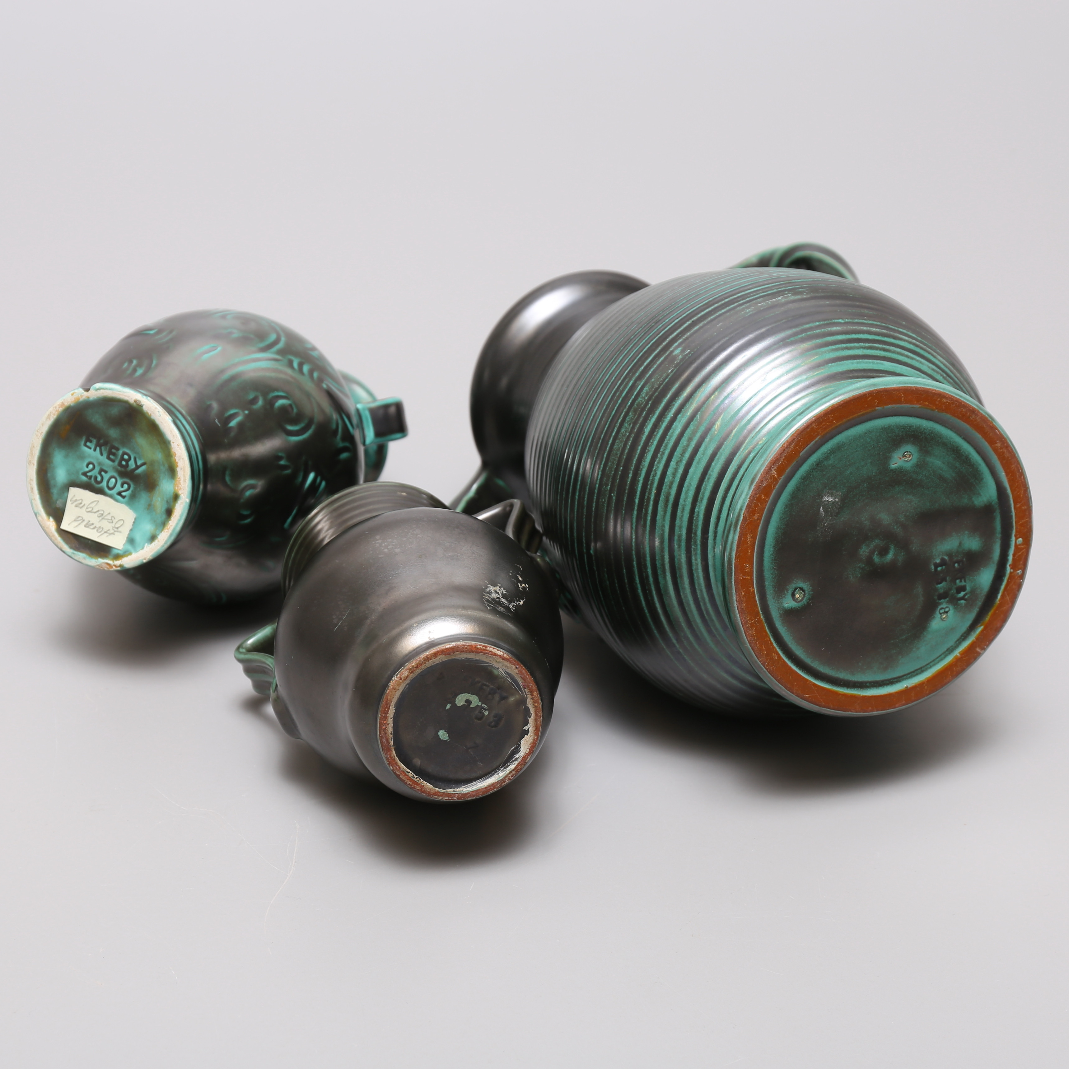 2694919. HÄNKELVASER, 3 st, keramik, Ekeby.