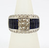 RING 18K vitguld med prinsessa och briljantslipade diamanter och safirer, ring storlek N, ca. 14,5 gr.