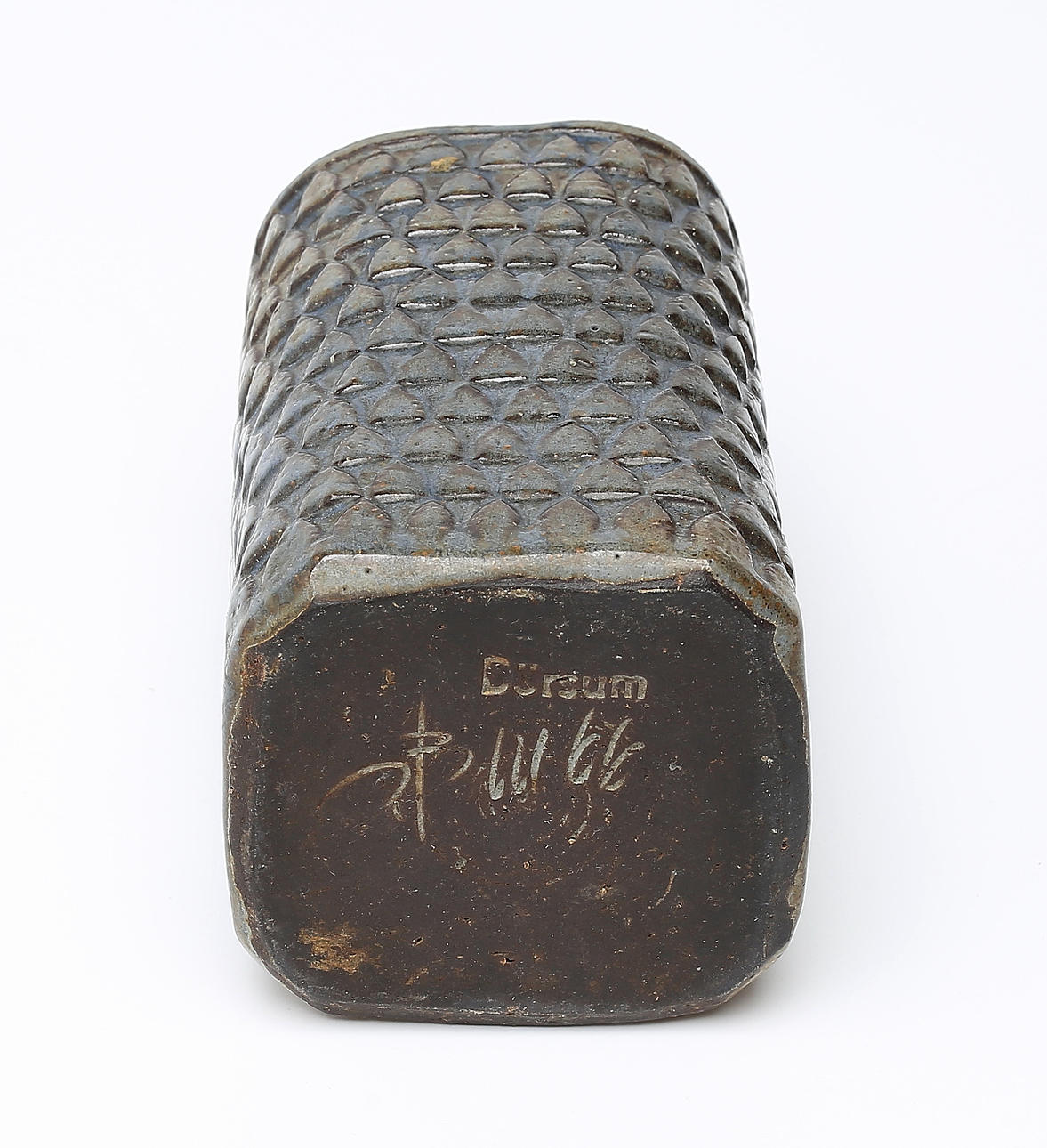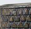 Kvadratisk, dekor i relief. Höjd ca 14 cm.