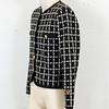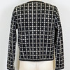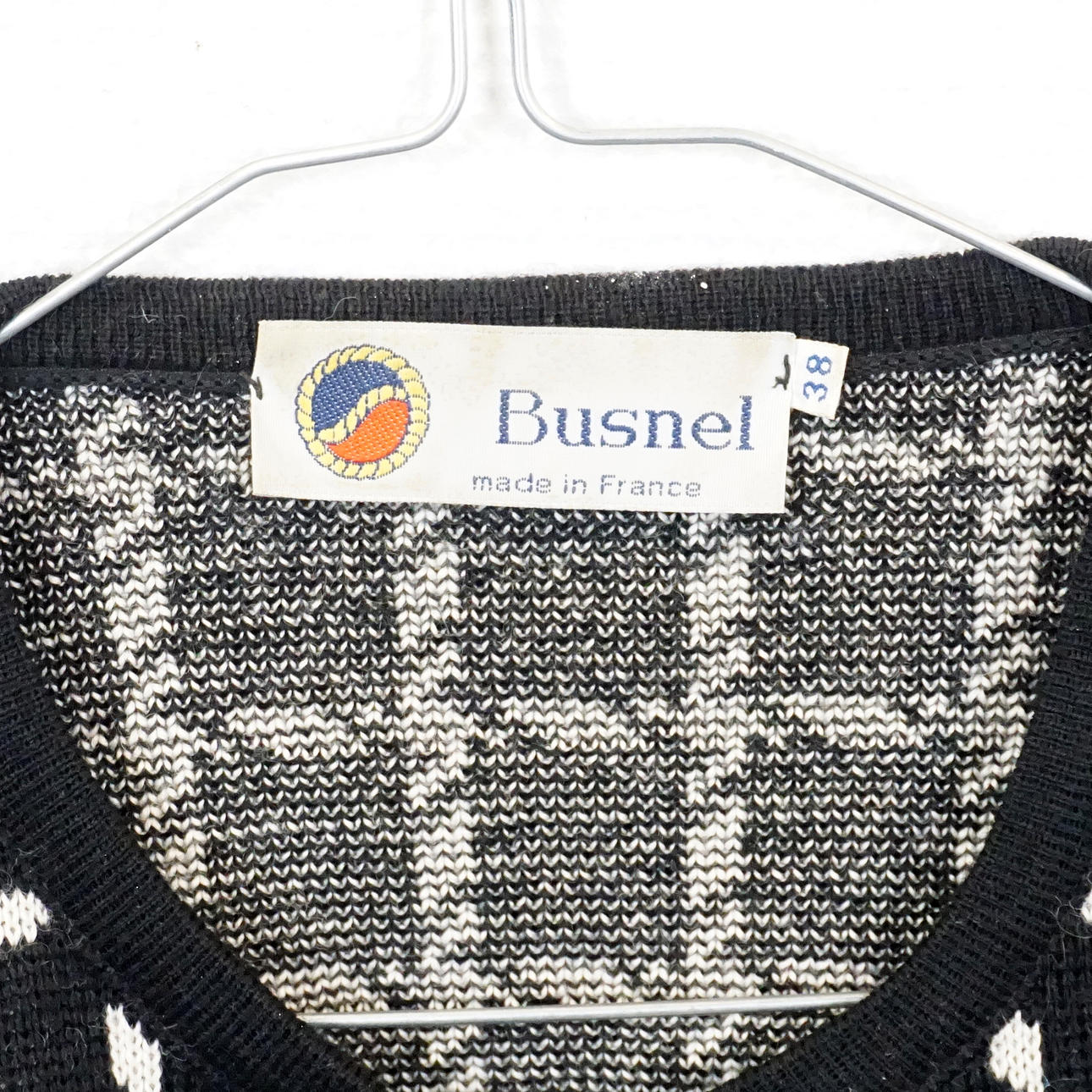 Svart/vit tyg i ull. Guldfärgade knappar med "B" logo. Märkt "Busnel Made in France".