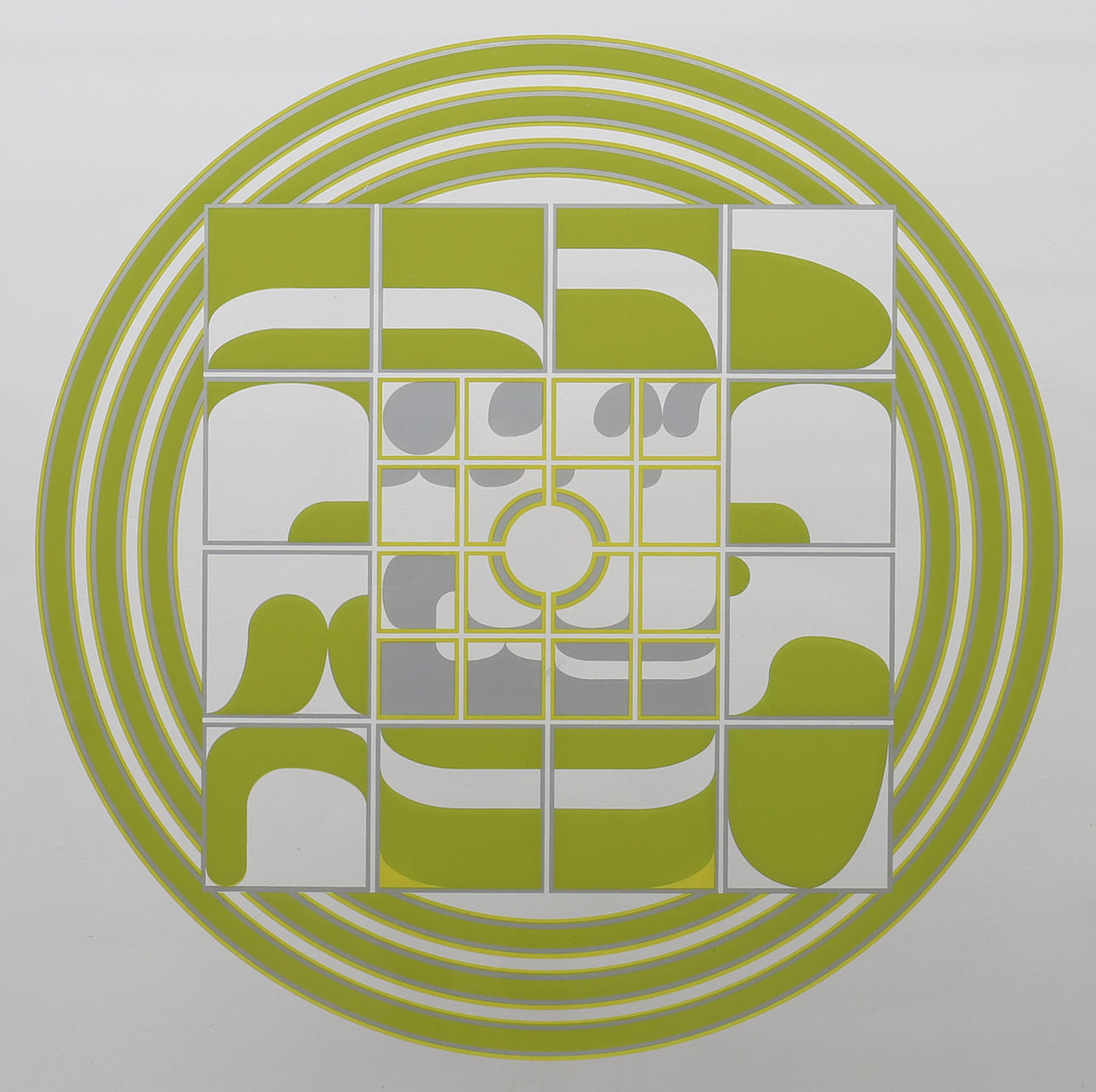 Signerad, daterad 1974, numrerad EA , färgserigrafi på plexiglas, bildytans diameter ca 89,5 cm, ramyttermått ca 100x101 cm .