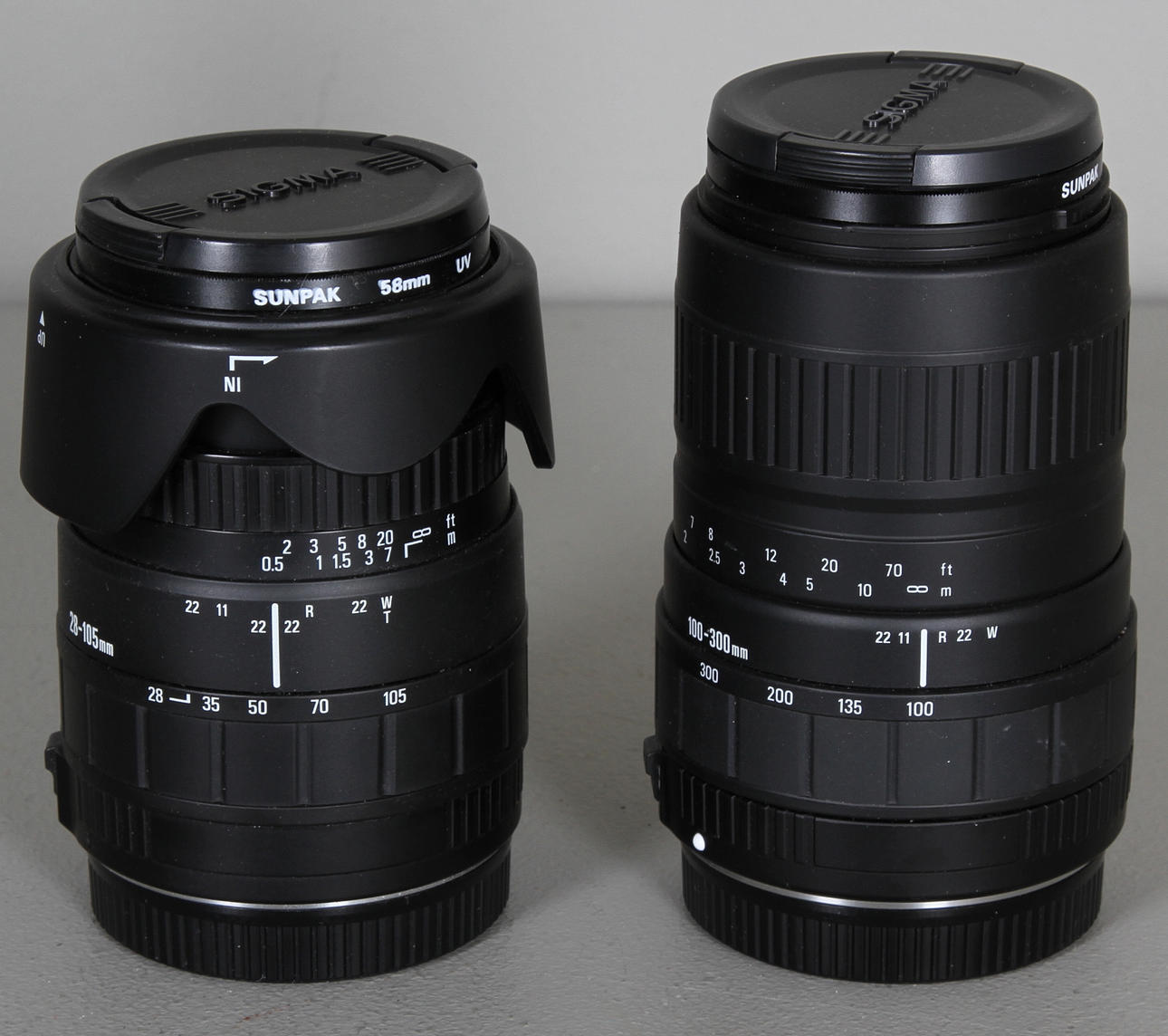 Objektiv, Sigma zoom 28-105mm 1:4-5.6 UC-II och Sigma zoom 100-300mm 1:4.5-6.7 UC.