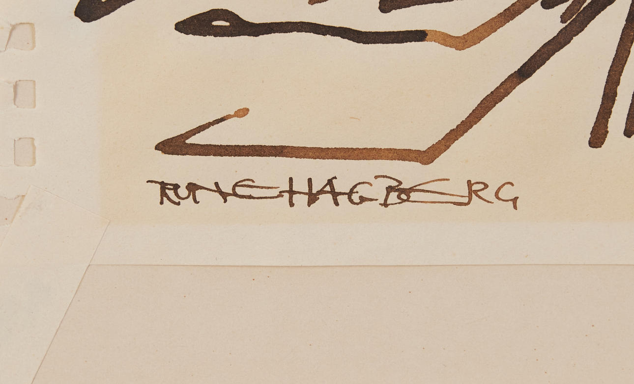 Tusch på papper, 27 x 35 cm. Signerad Rune Hagberg.