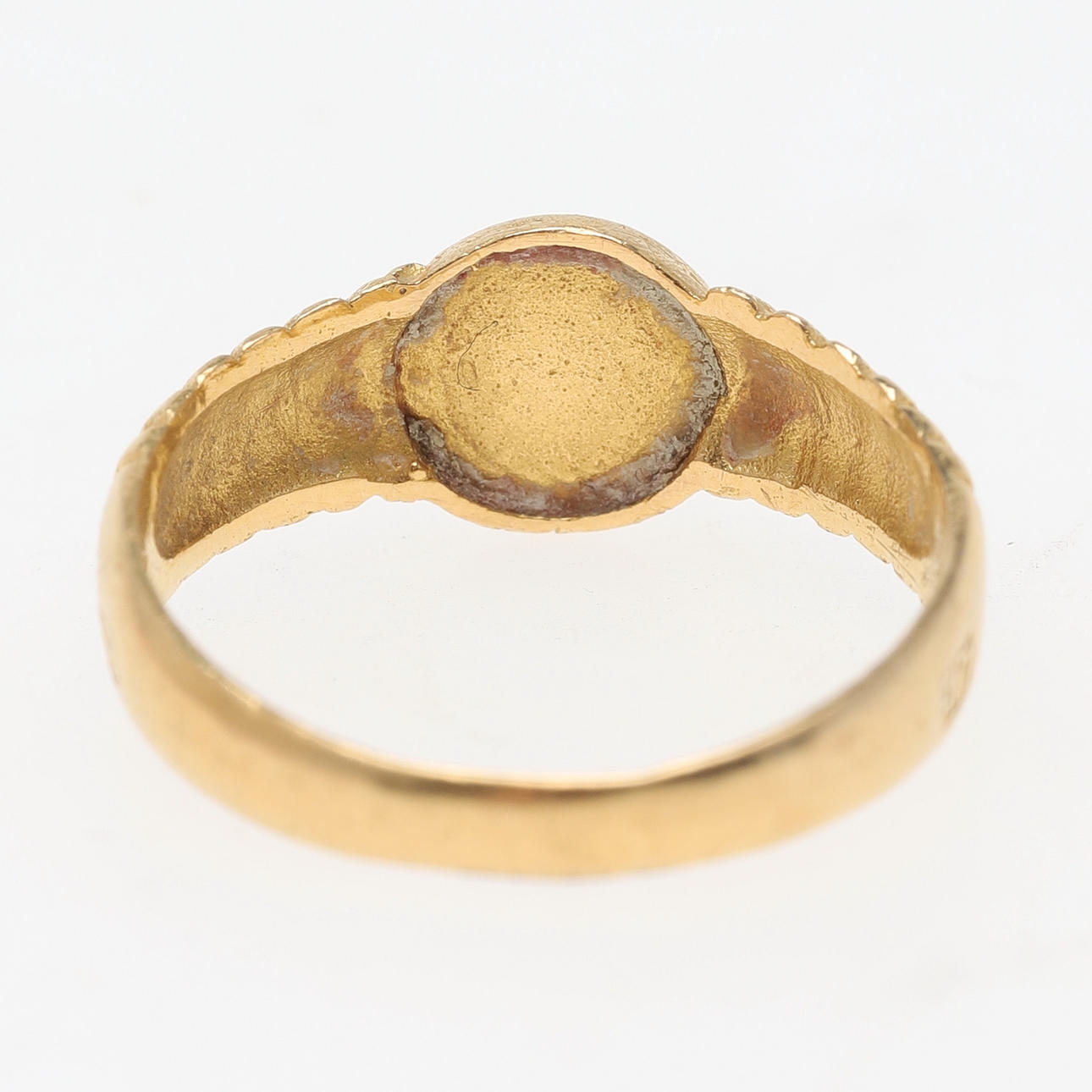 Bruksslitage, skav/märken. Något ärgad metall runt krona. Ytsmuts.