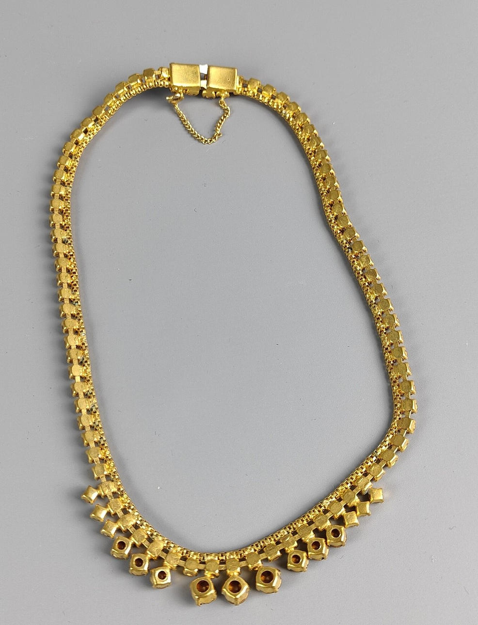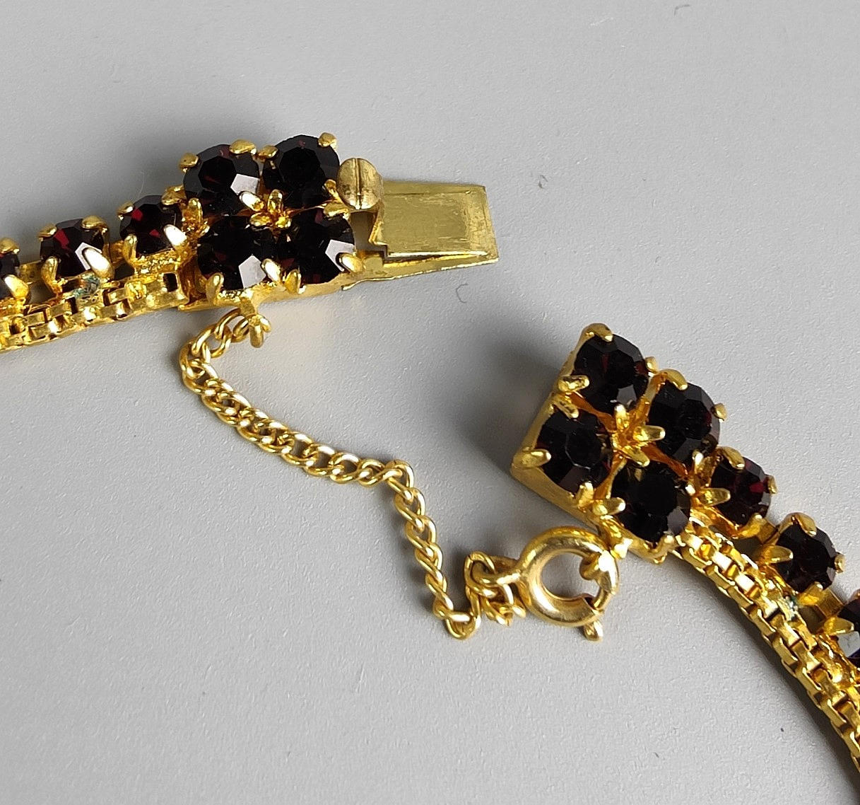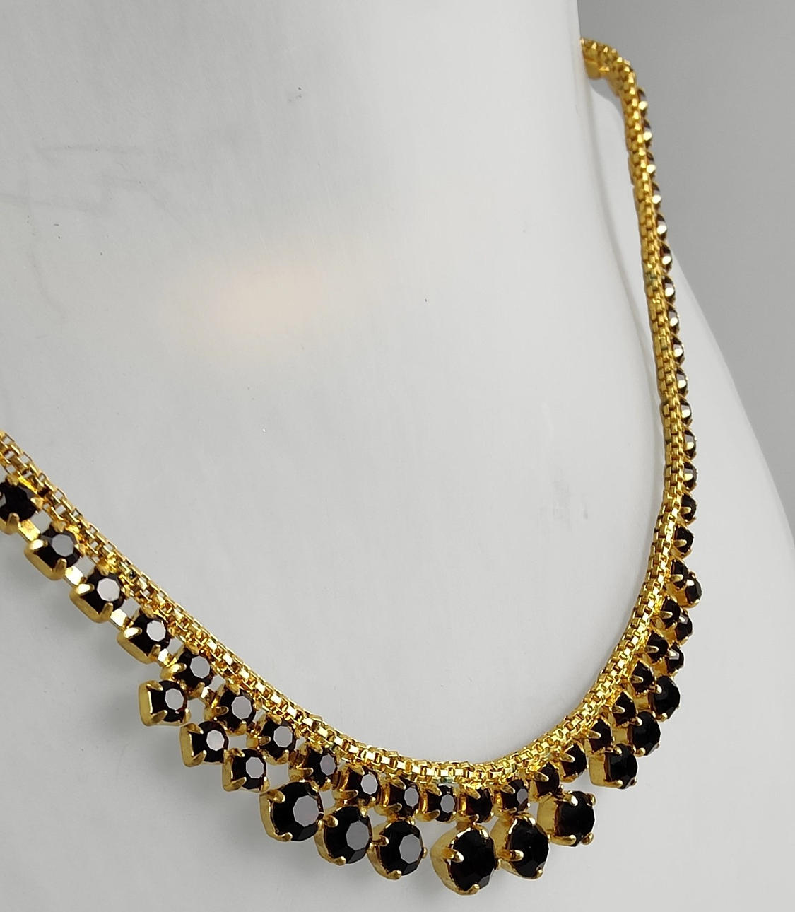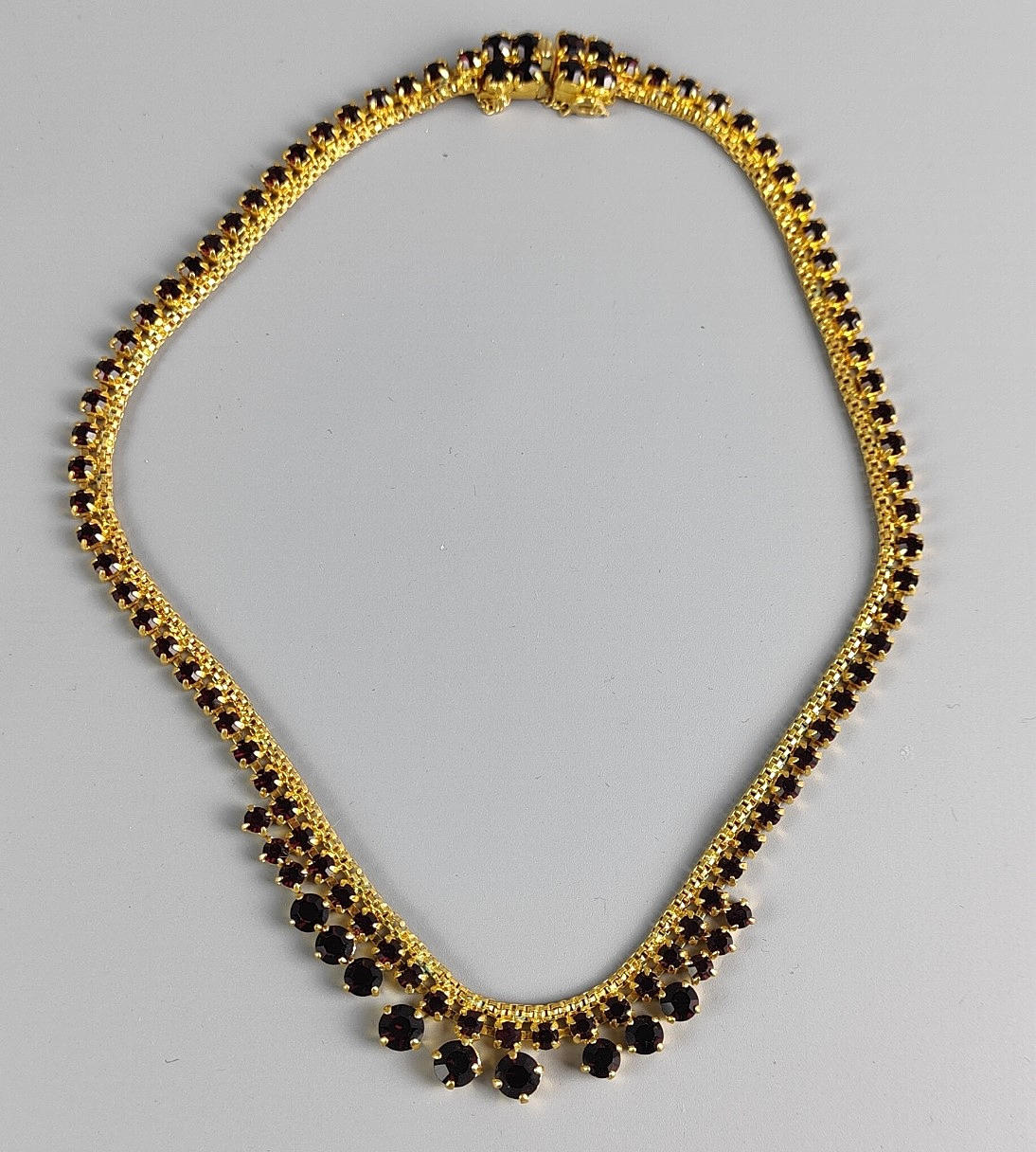 Strasshalsband översållat med granatfärgade stenar, längd 40 cm.