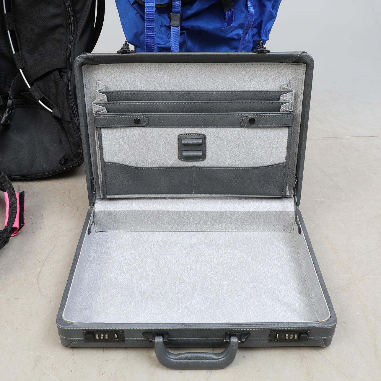 Attachéväska med kodlås, höjd ca 33 cm, längd ca 44 cm, djup ca 9 cm.