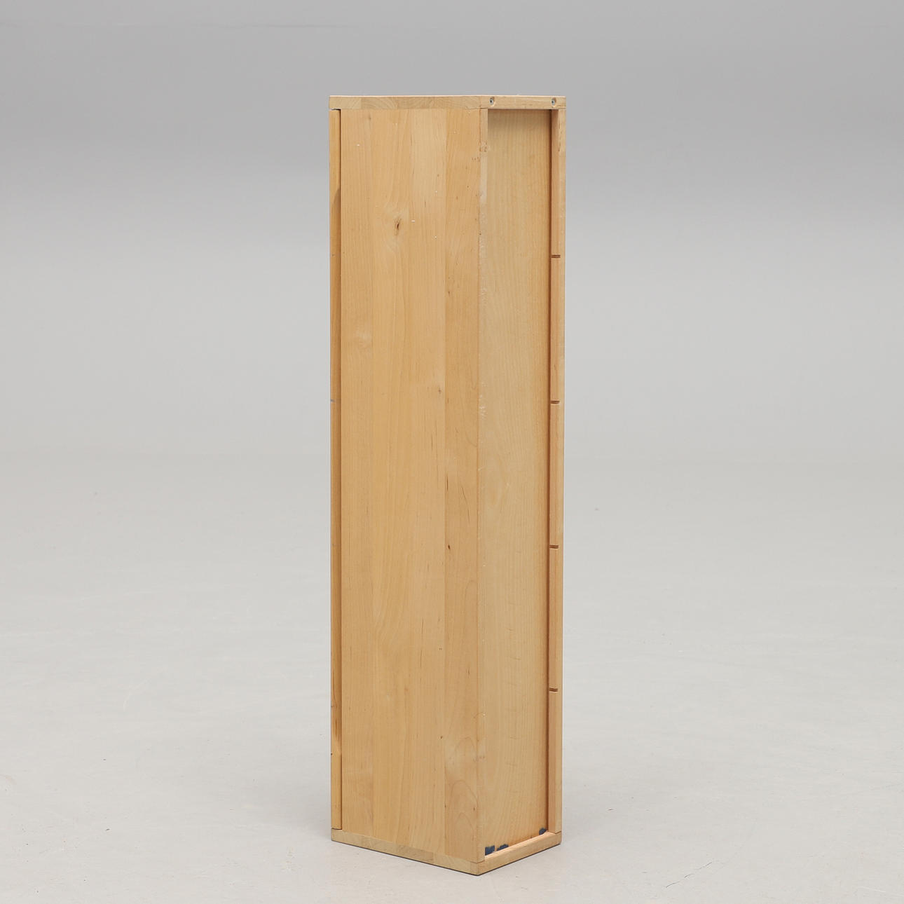 Björk. Lösa blålackerade hyllplan. Bredd c:a 13, djup 18, höjd 71 cm.