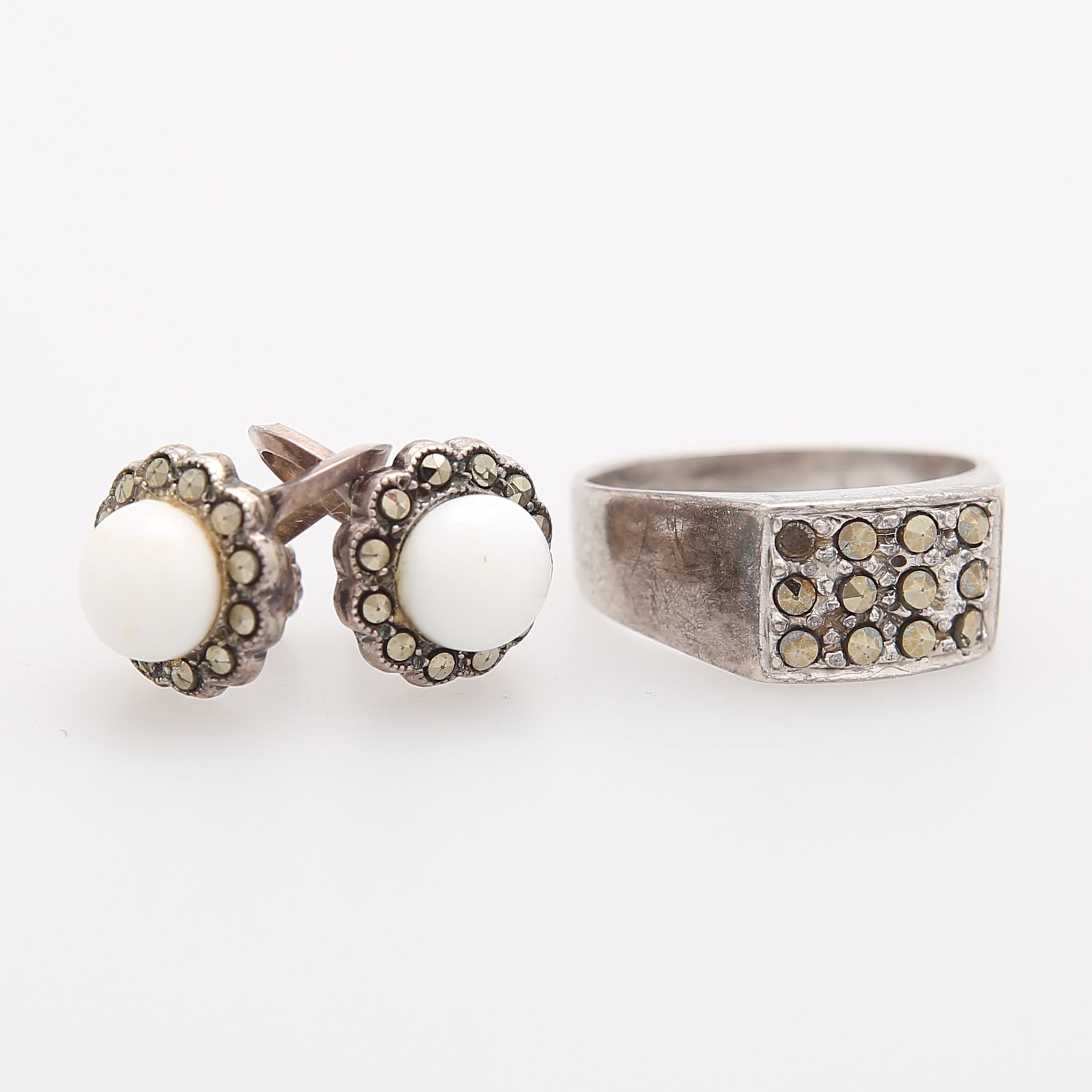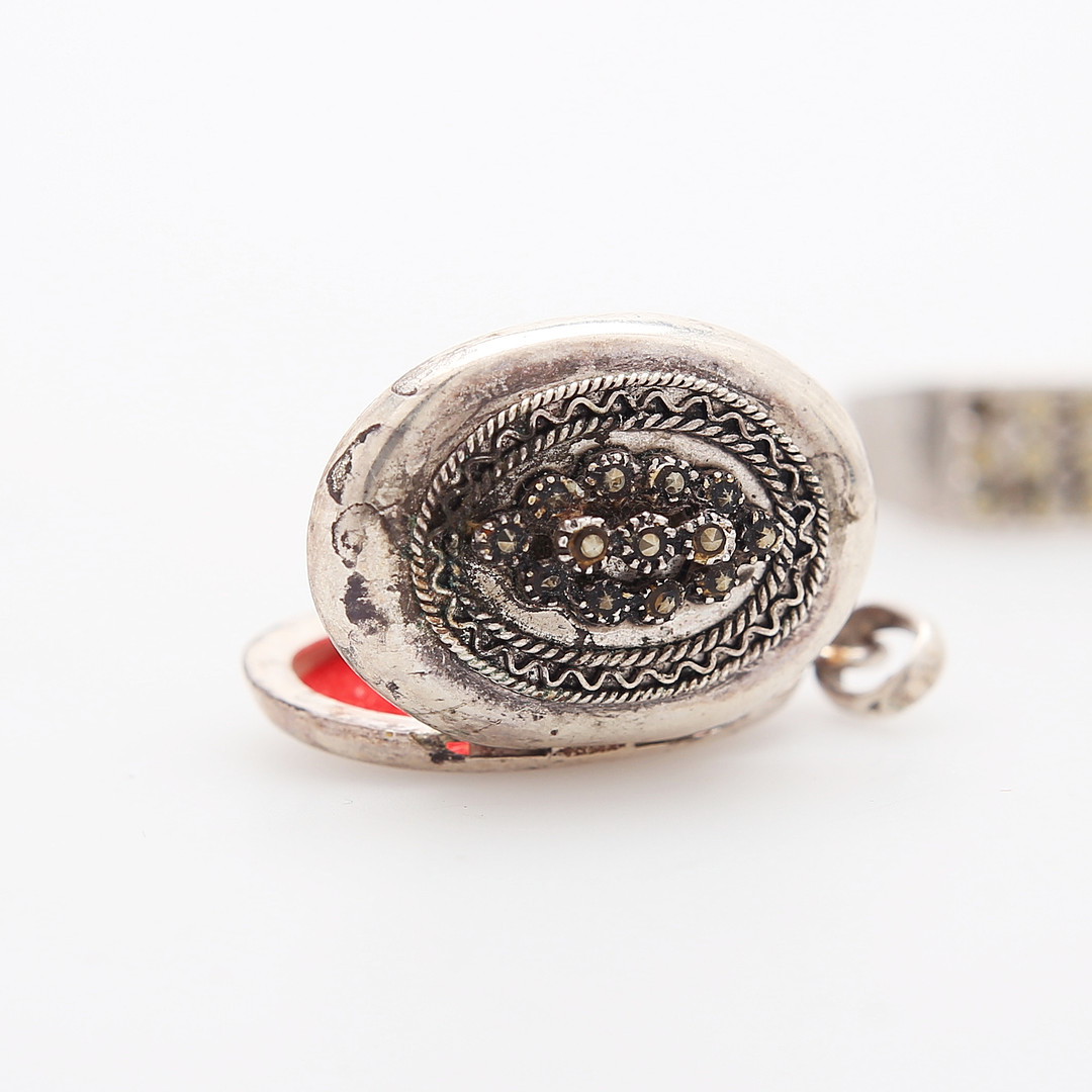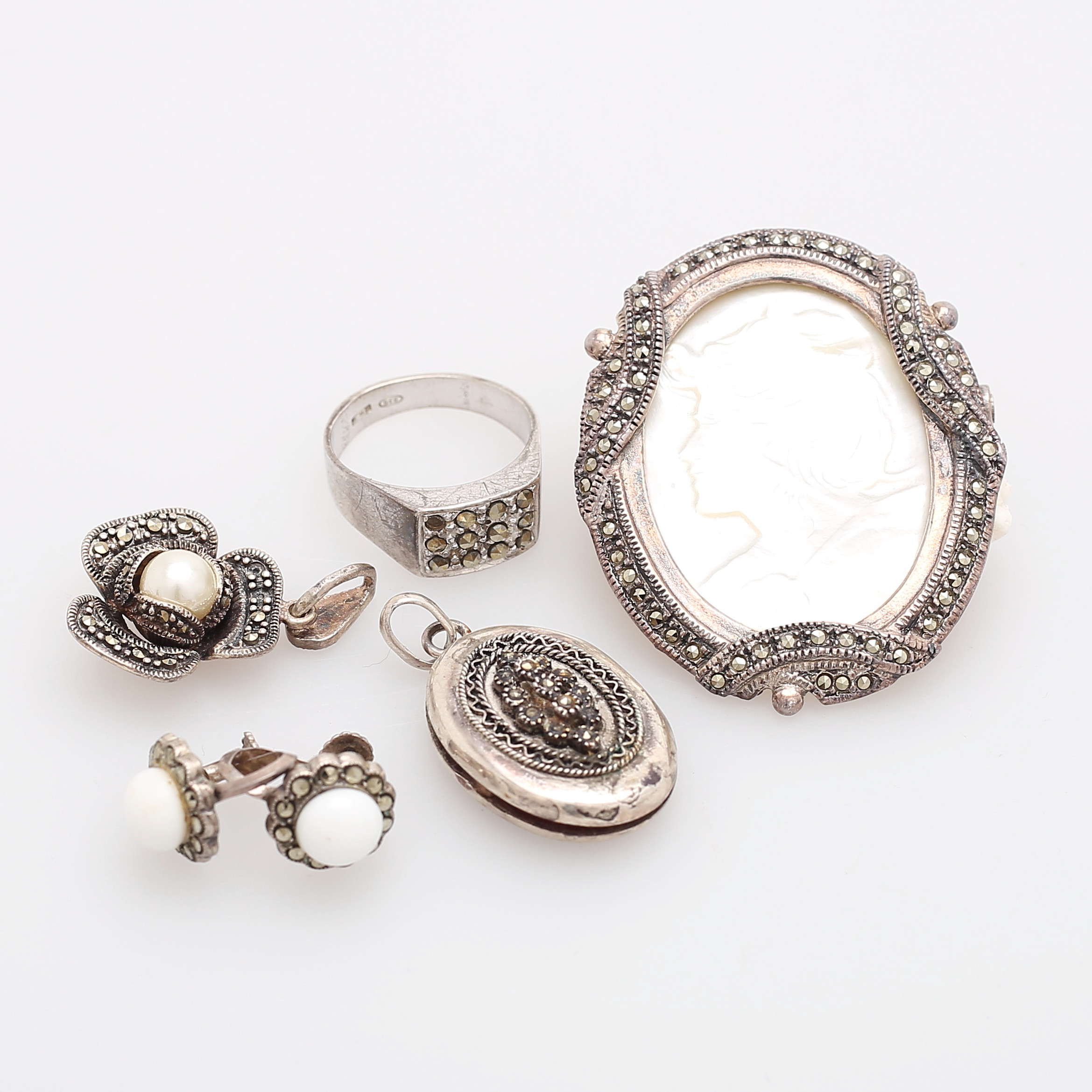 2705237. SMYCKEN, 6 delar, silver och markasiter.