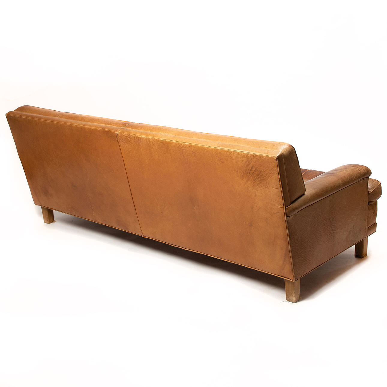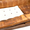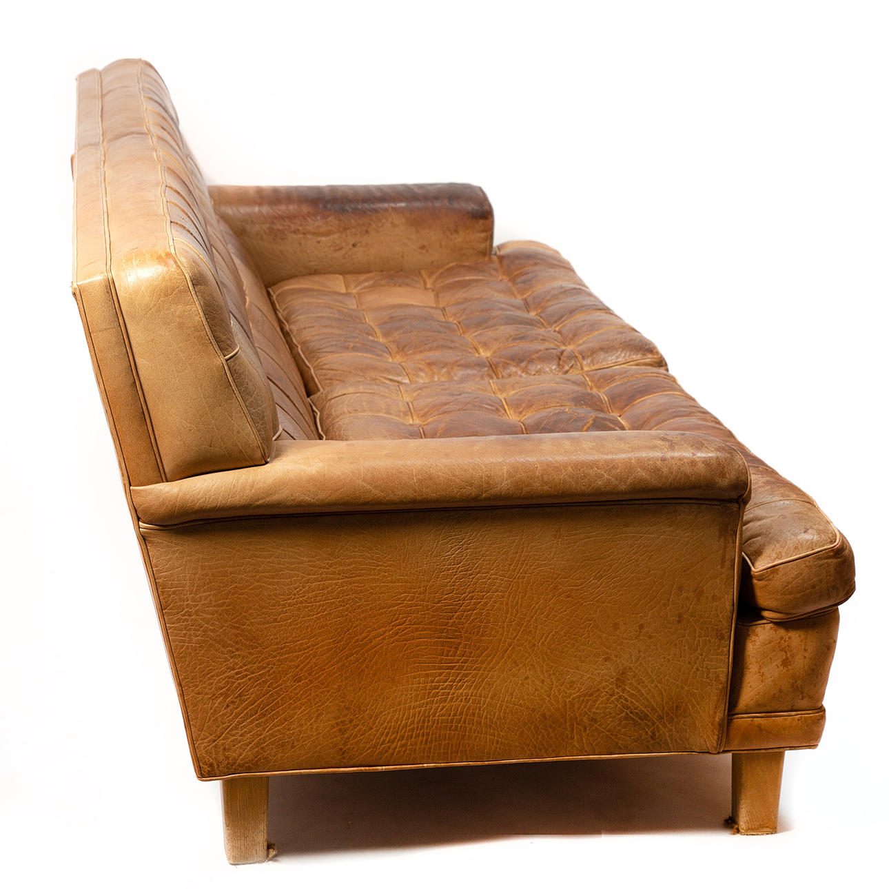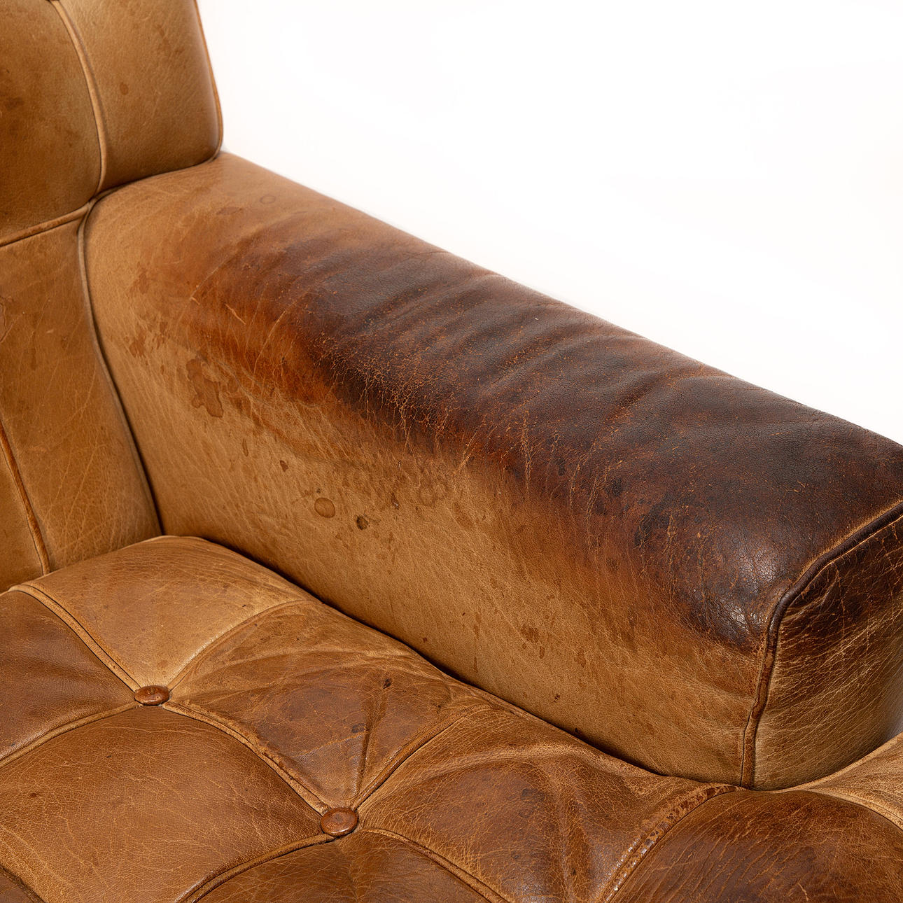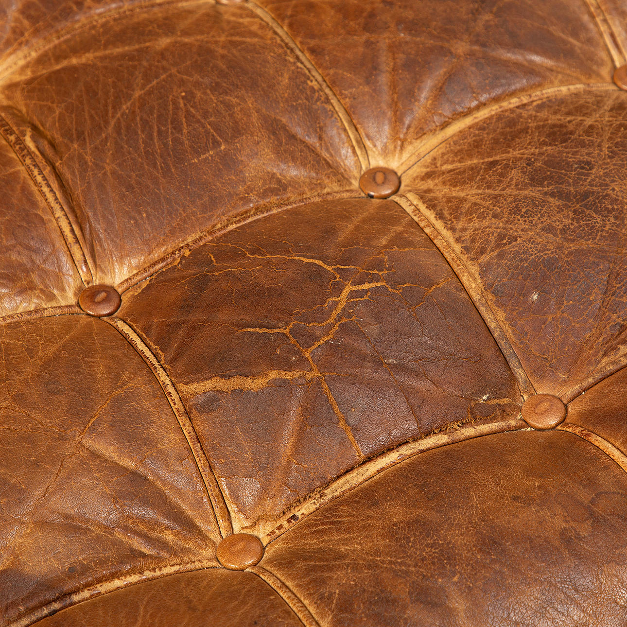 Slitage, fläckar, torrsprickor i läder.