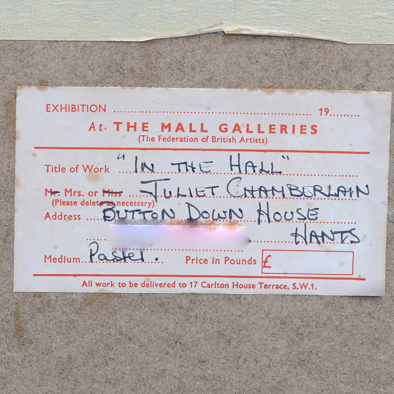 *** Inskrivet på The Mall Galleries Exhibition label a tergo.