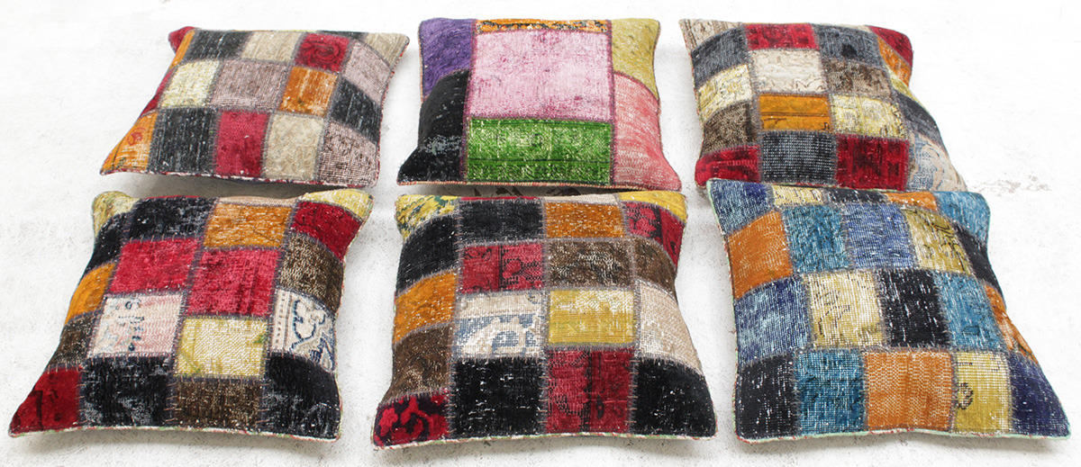 270911. KUDDARFODRAL, 6 st, patchwork, ca 50 x 50 cm.