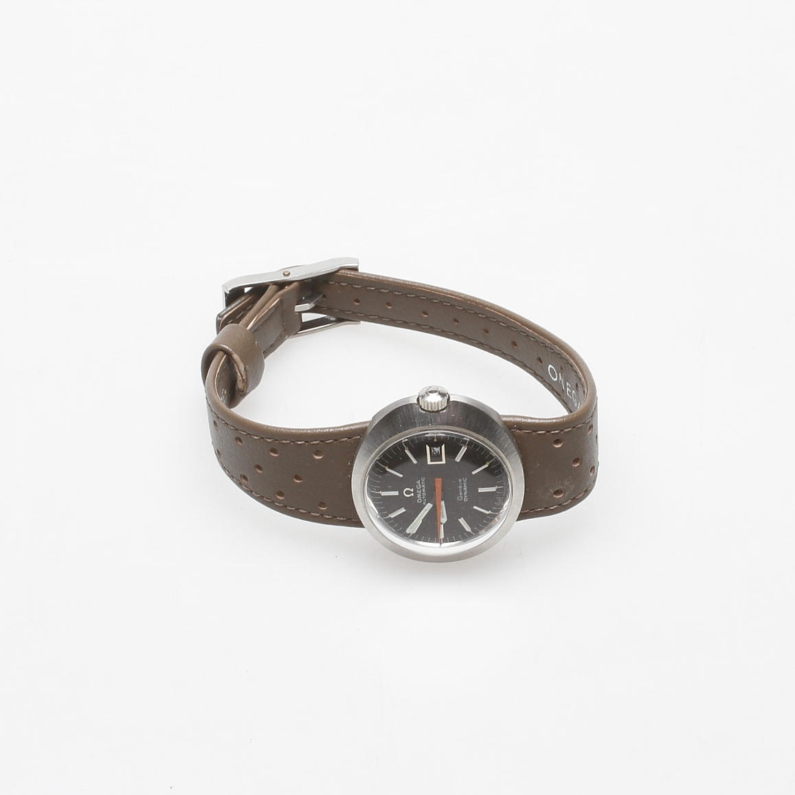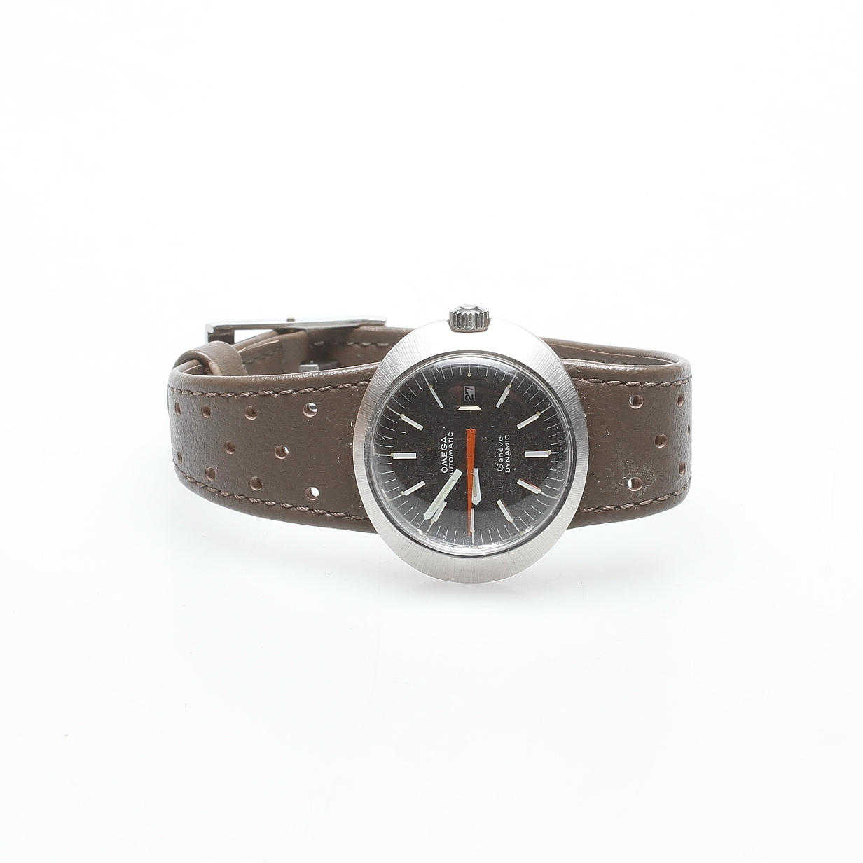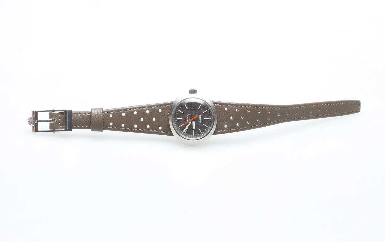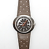 New old stock, ny från äldre lager. Stål, mörk urtavla, originalarmband samt lås, datum, plastglas. Diameter cirka 30 mm.