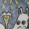 Repa på ca 5,5 mm bredvid fyrverkeri. Flera repor/märken över bl.a. Hemulen.