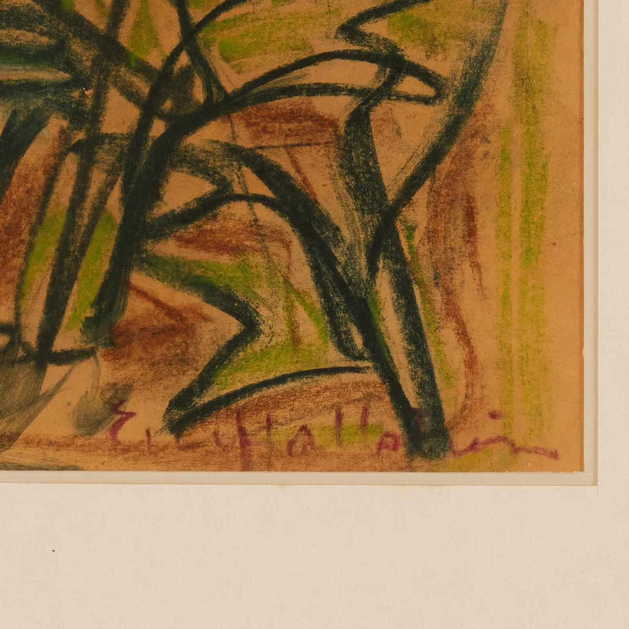 Pastell på papper, bildyta 39 x 55 cm. Mått inkl. ram 64 x 80 cm.