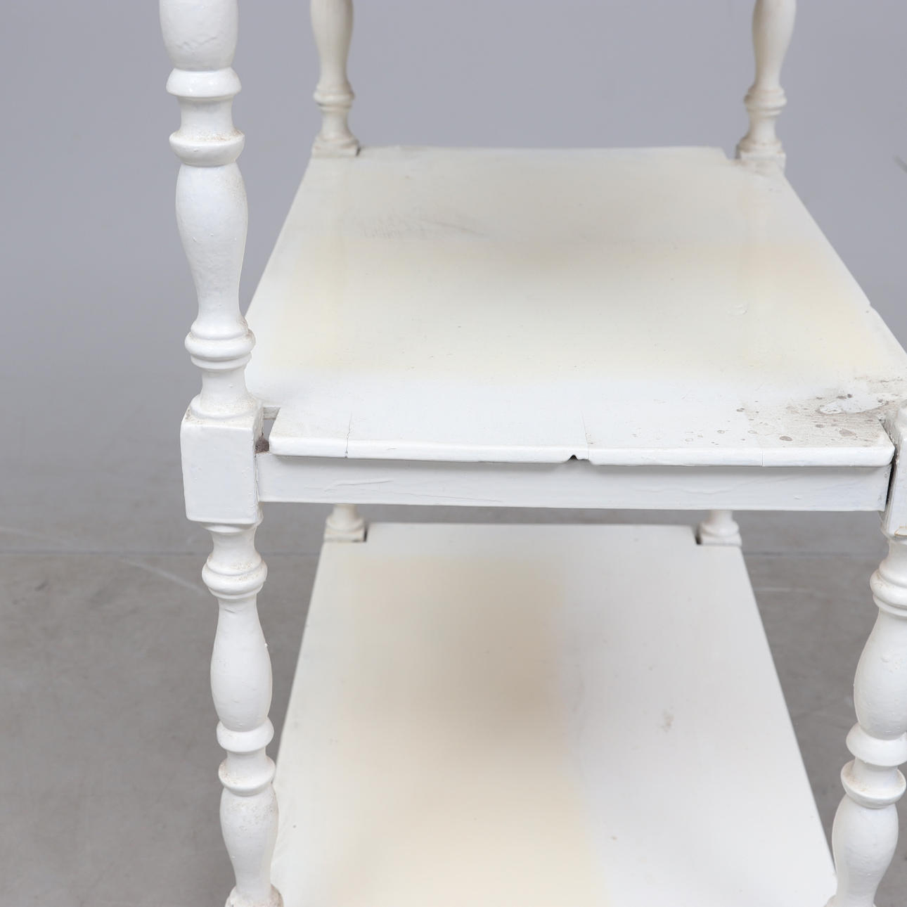 Ytslitage. Repor och märken. Torrsprickor. Senare målad.