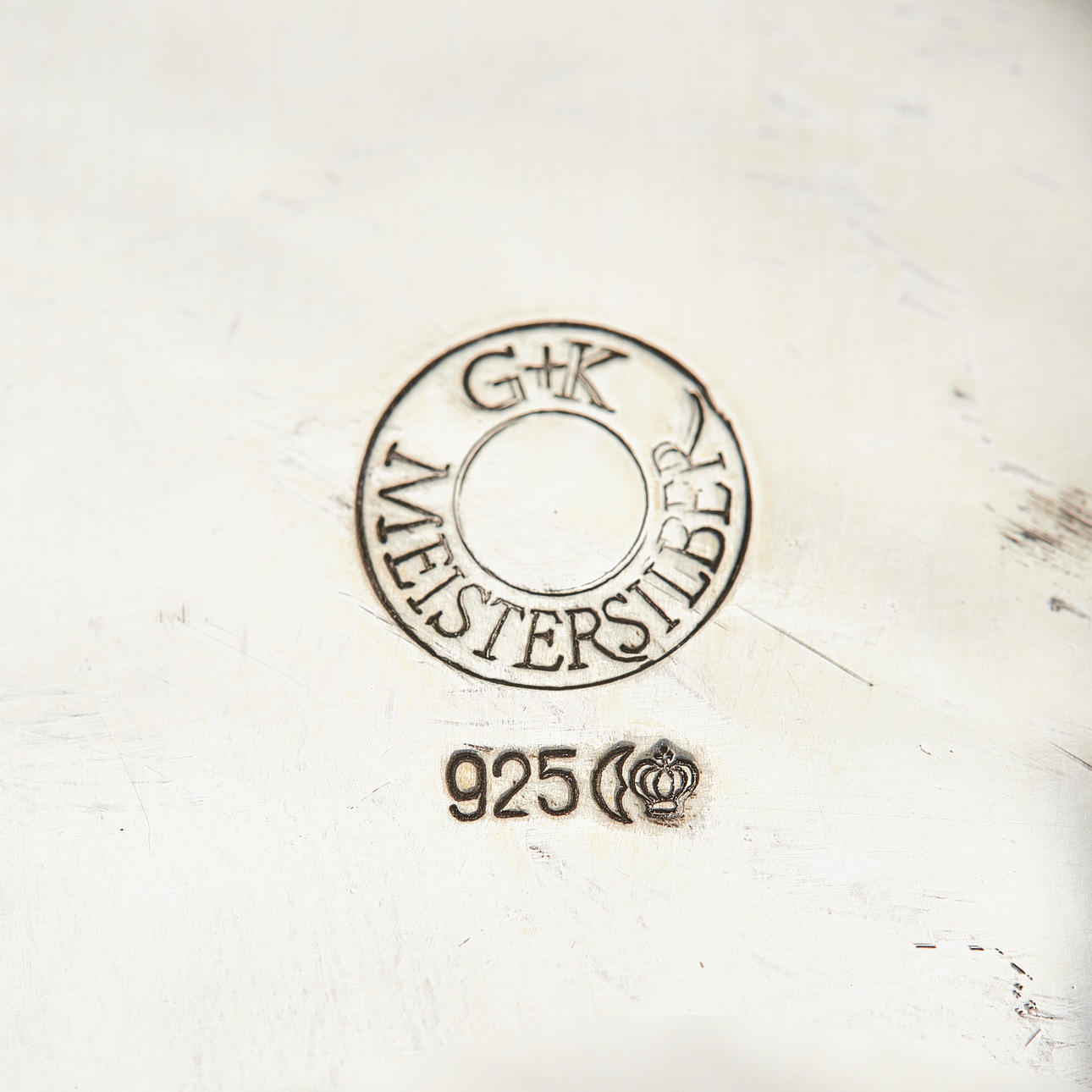 Kanna i 925 silver, utrustad med ett lättnadshandtag och stående på fyra böjda fötter, stämplad på undersidan och med mästarens kännetecken 'G.K.'tillhandahålls, legering testad, H 15,5 cm, B 18,5 cm, D 11 cm, vikt: ca. 368 g