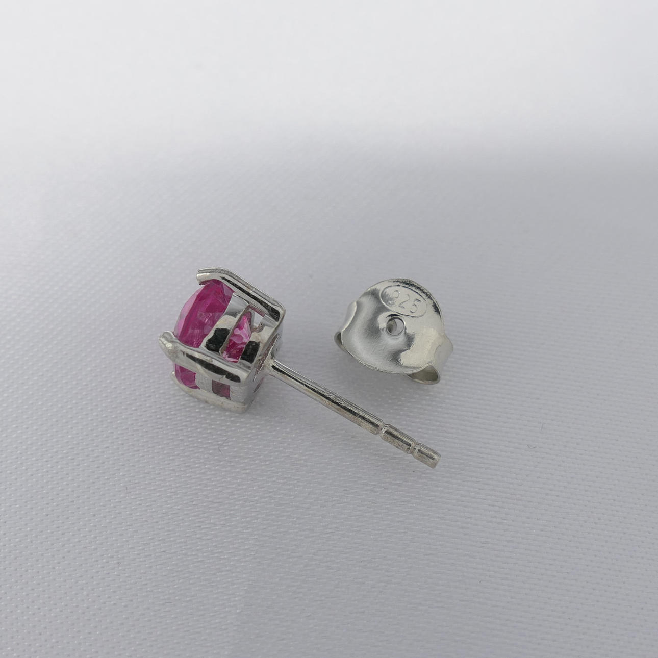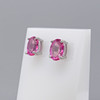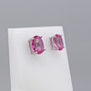 Ett par silverörhängen klo-set med naturlig rosa topas, utrustad med fjärilsryggar.