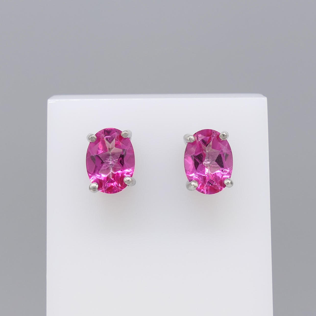 Varje topas mäter 8 x 6 mm. Den totala karatvikten för båda topas är 2.10ct ca.
