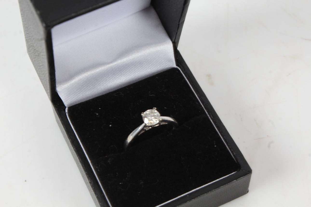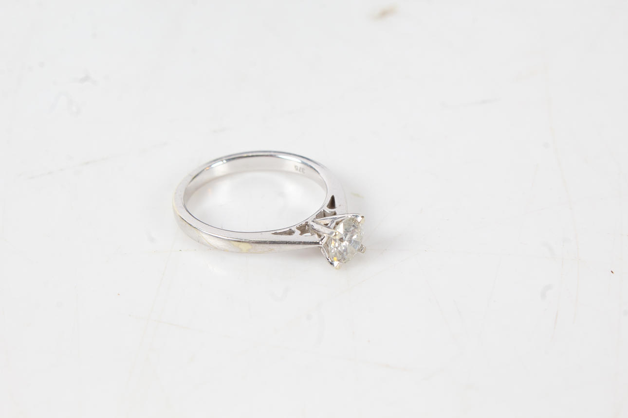 9 karat vitguld diamant solitaire ring, ungefärliga diamant carat vikt: 0,50 ct, ring storlek J, 2,40 gram.