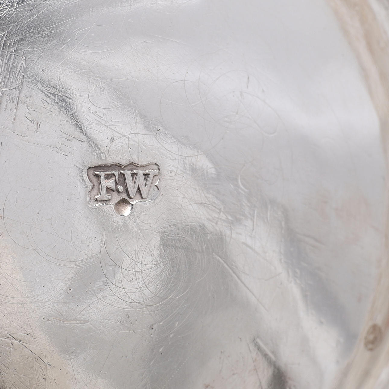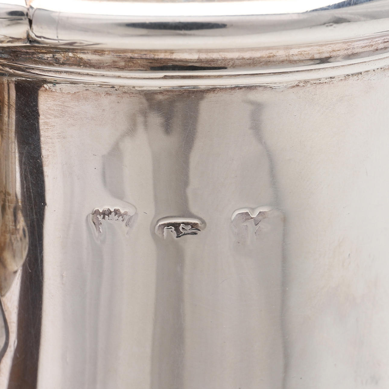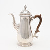 Silver, stämplad London 1752, handtag av snidat trä, höjd 23 cm, vikt 716 gram.