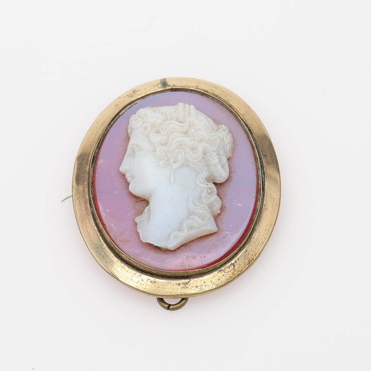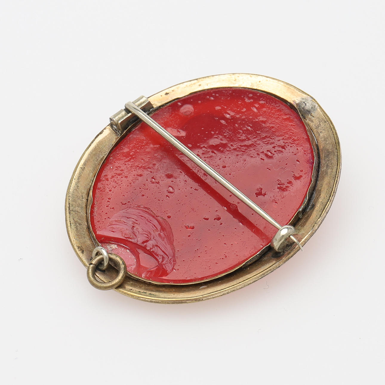 Bruksslitage, broschens kamé med avslag baktill.