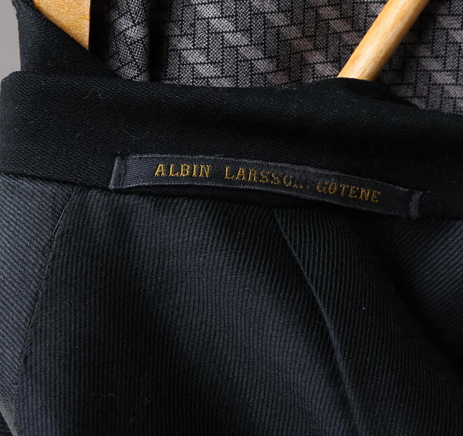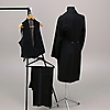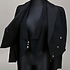 Två västar, frackjacka, byxor med revärer.