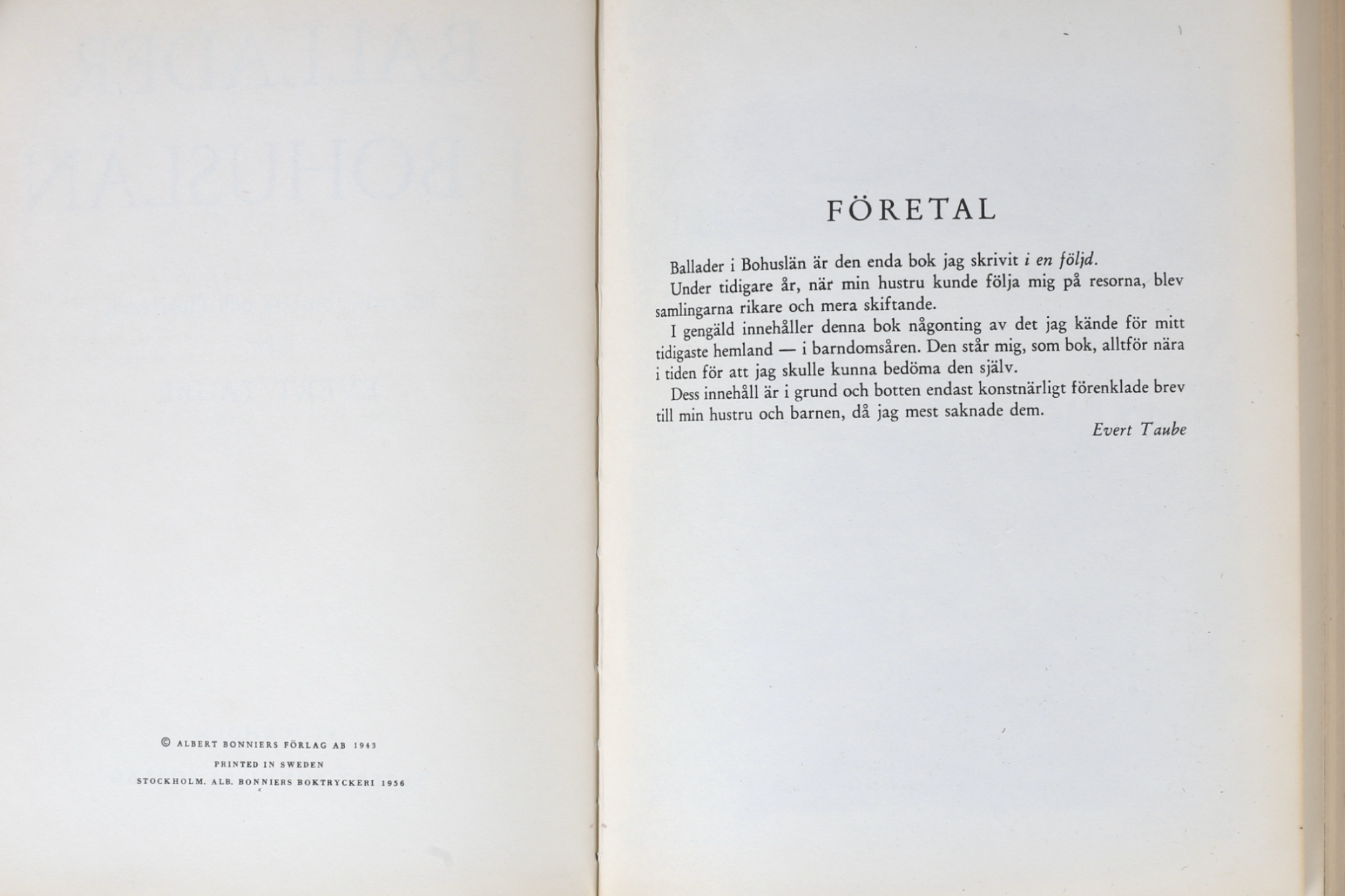 2728639. BÖCKER, 4 st, Evert Taube, Samlade visor, 1950-tal.