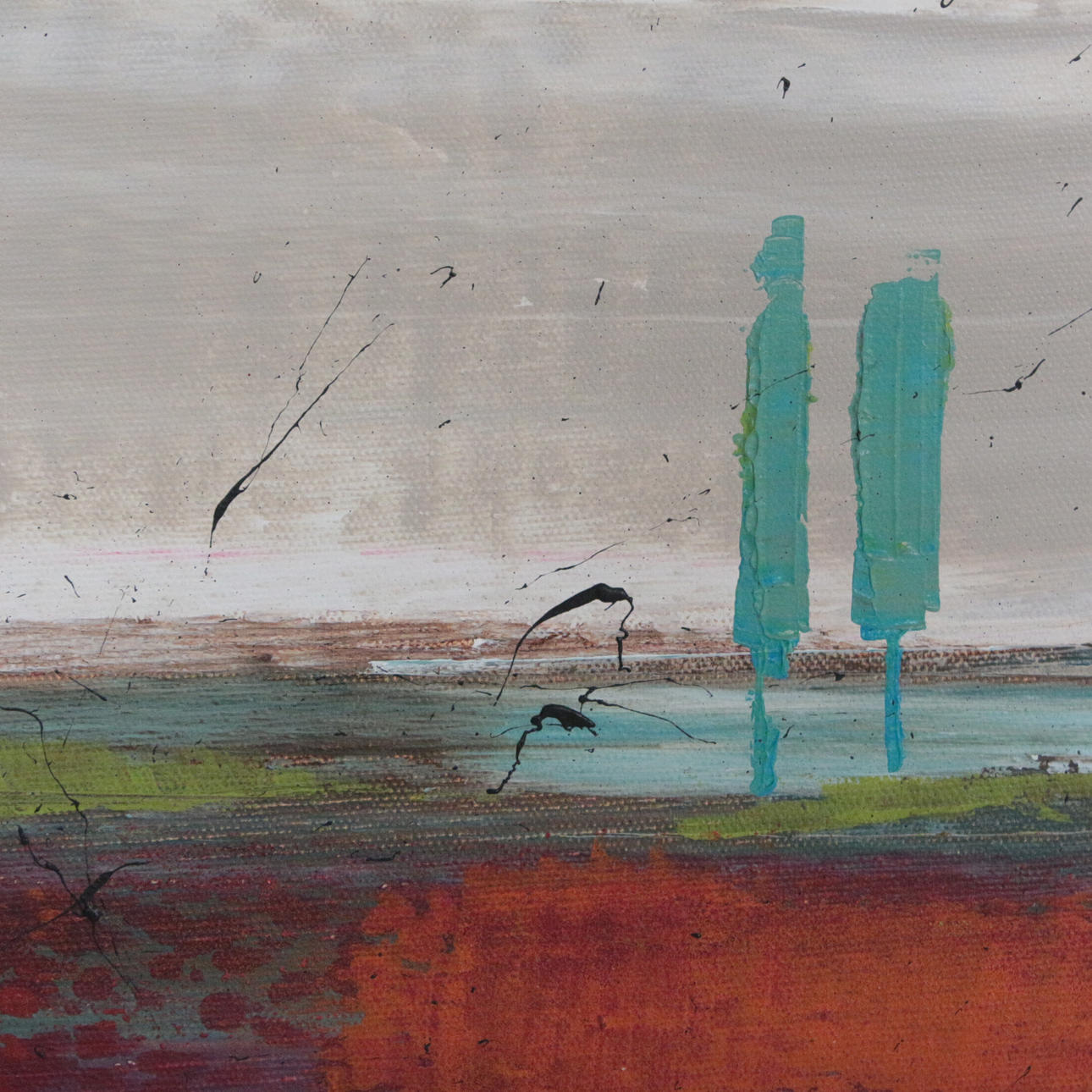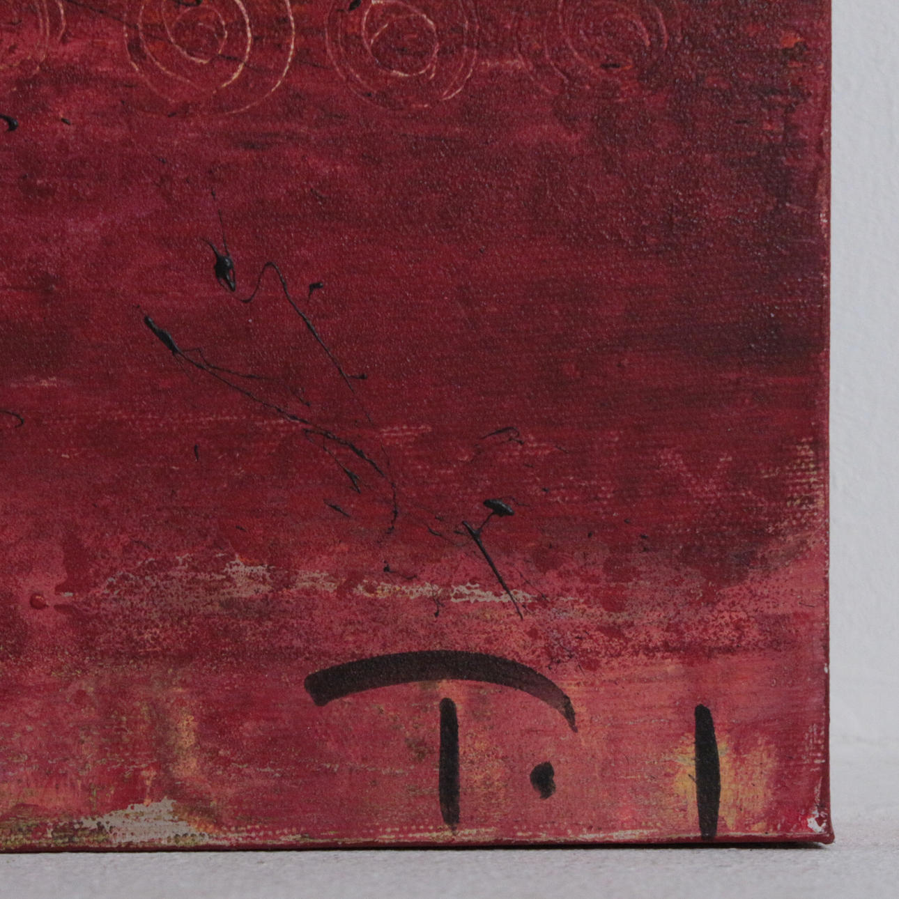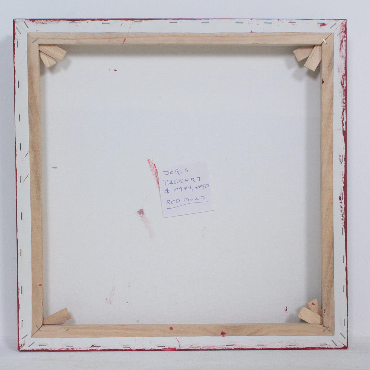 Doris Packert, 'Rött fält, 'Blandteknik på duk, Storlek: 50 x 50 cm.