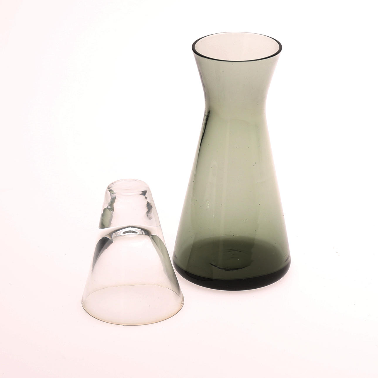 Total höjd, ca, 15 cm. Flaska, höjd, ca 11,5 cm. Glas, höjd, ca 6 cm.