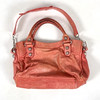 Rosa tonat läder, innerfack med dragkedja samt ytterfack med förvaring och dragkedja. Märkt 173084-2123. Längd ca 38, höjd 25 cm.