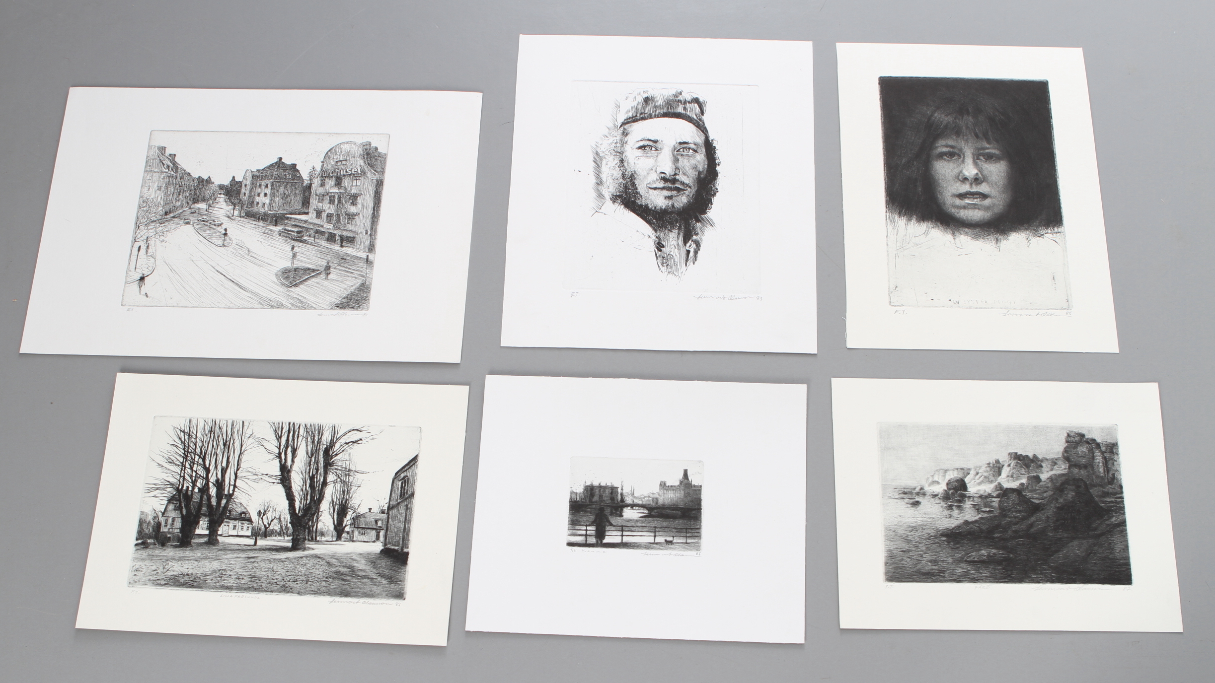 273291. LENNART OLAUSSON. 6 st etsningar, signerade, 1980-tal.