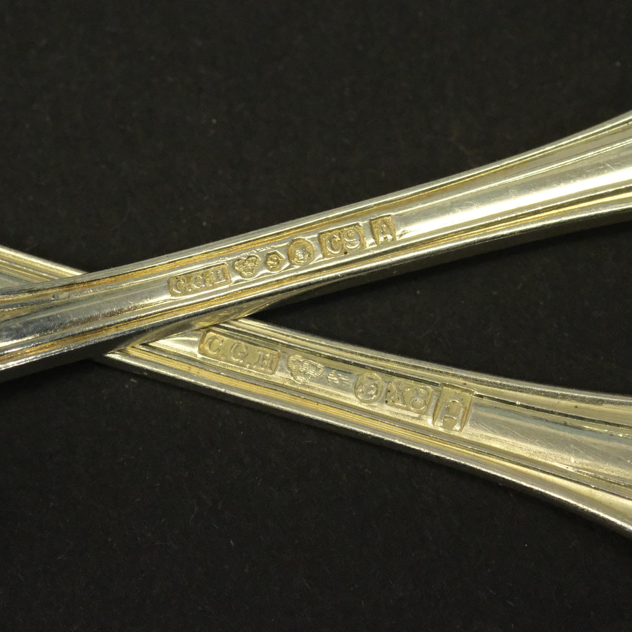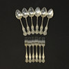 Sex gafflar, längd 14,5cm samt sex skedar, längd 18cm, totalvikt ca 427 gram.