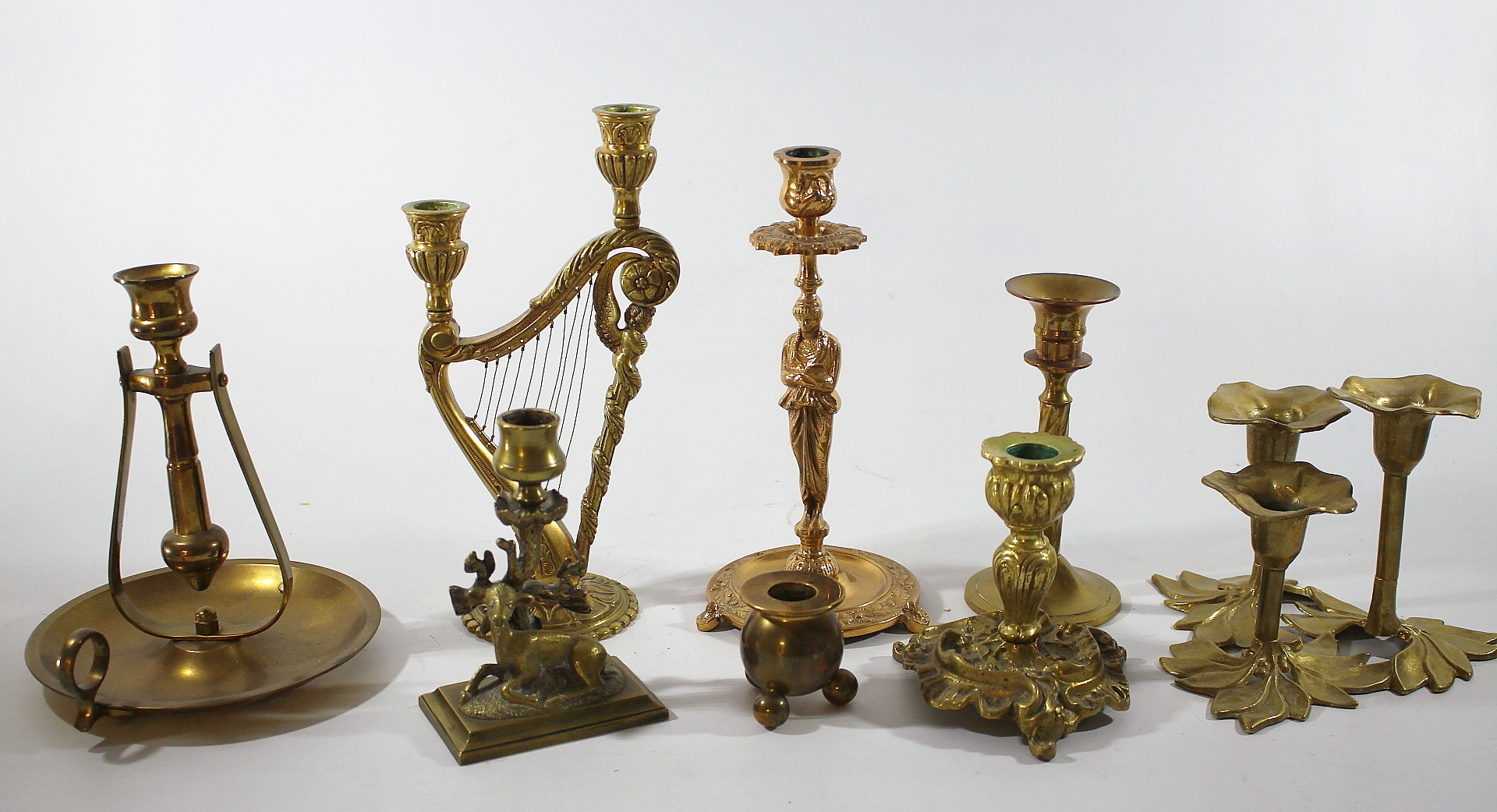 273500. LJUSSTAKAR, 8 st, mässing och malm.