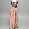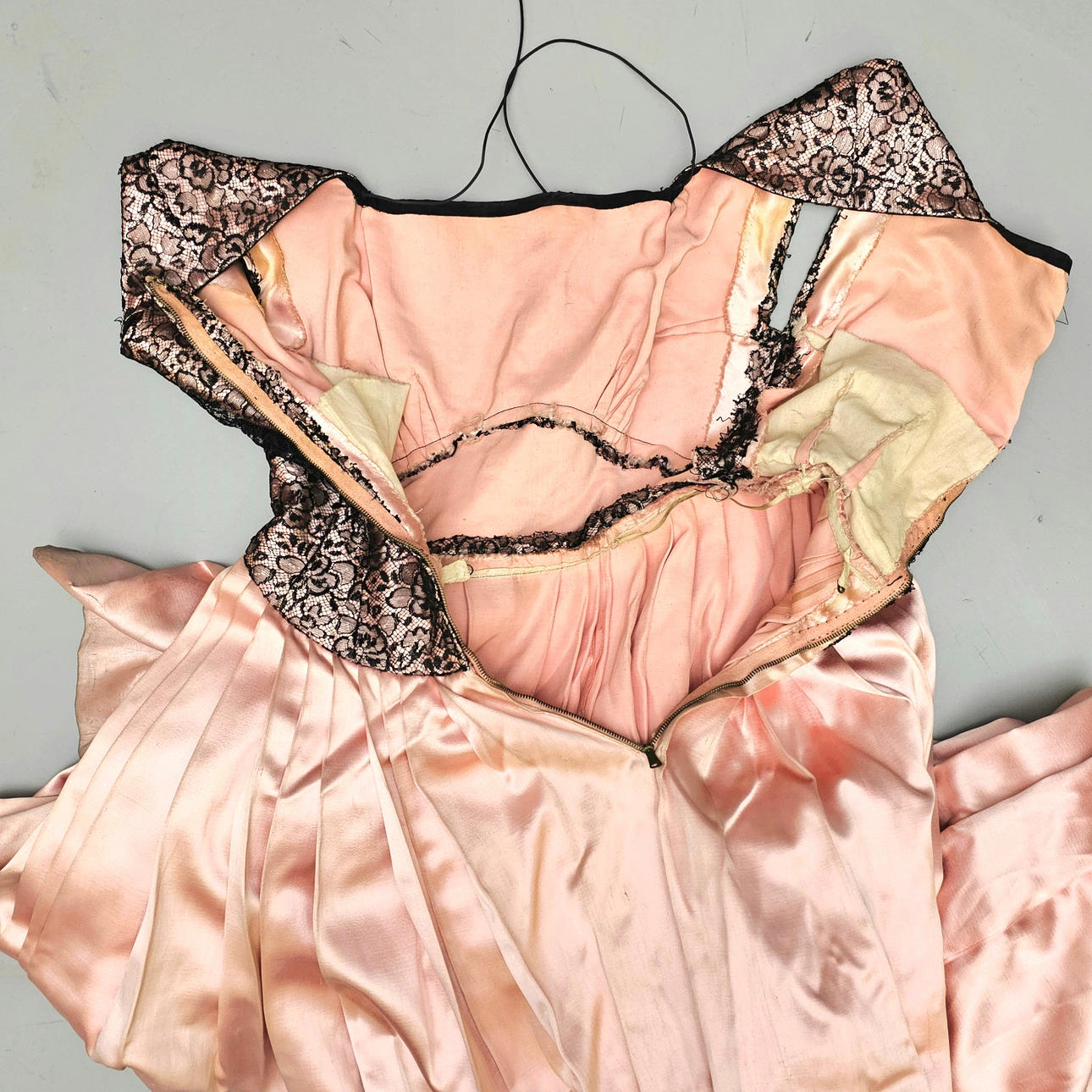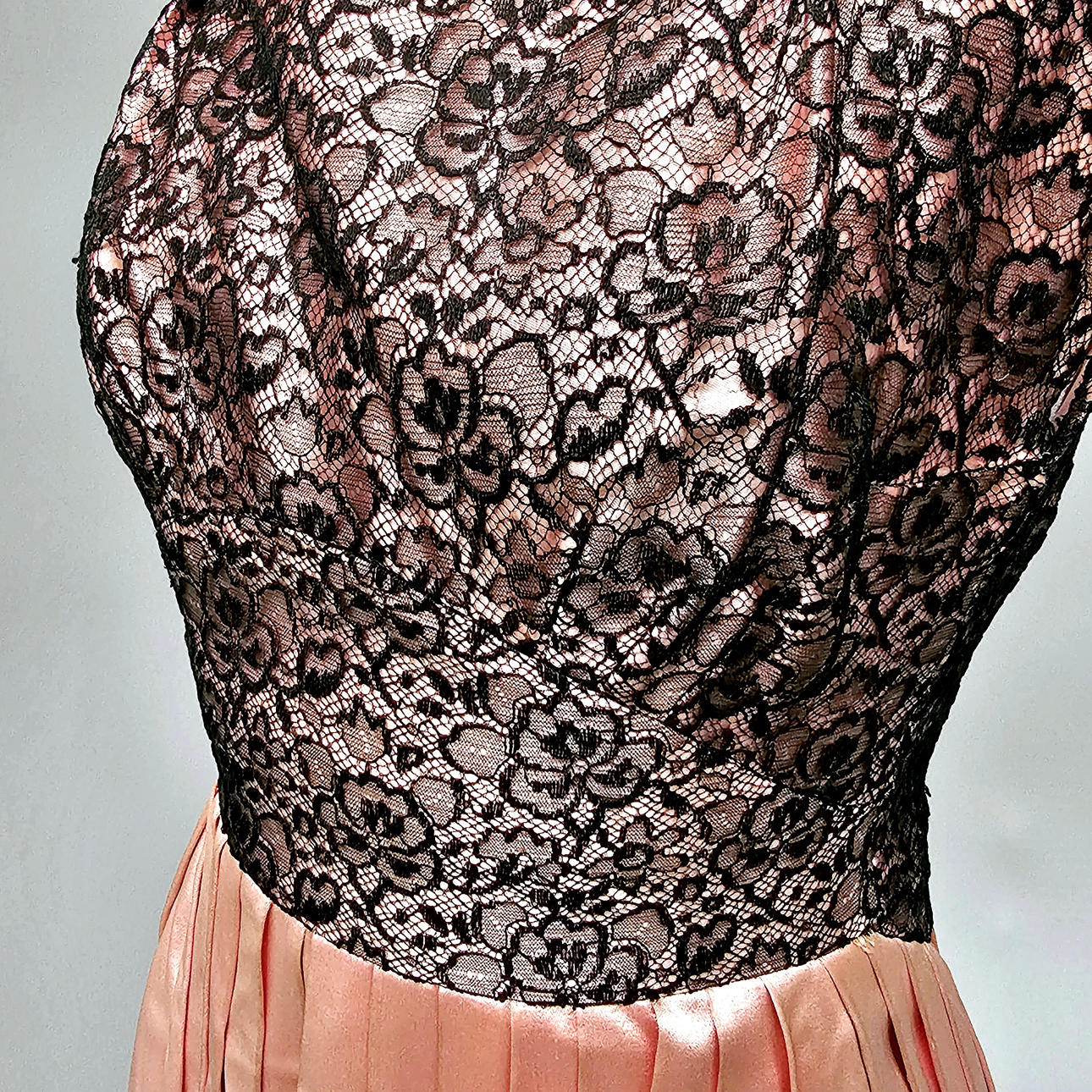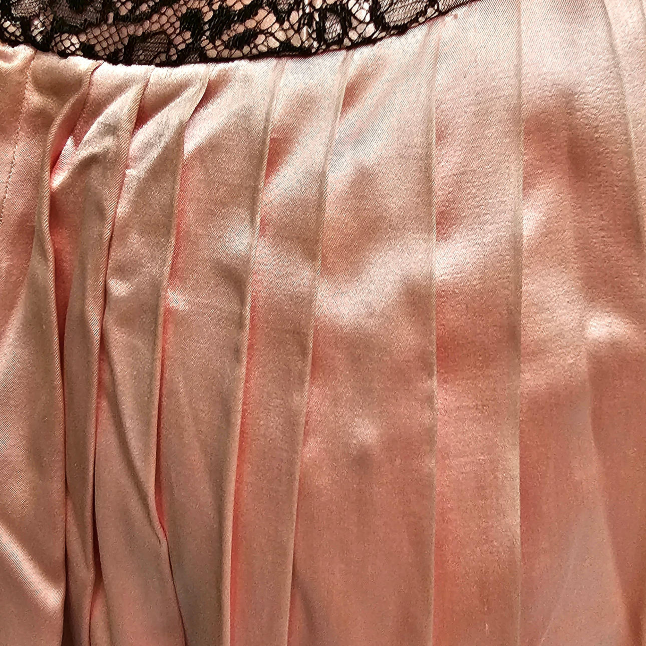 2735153. ROSA SATIN KLÄNNING MED SVART SPETS.