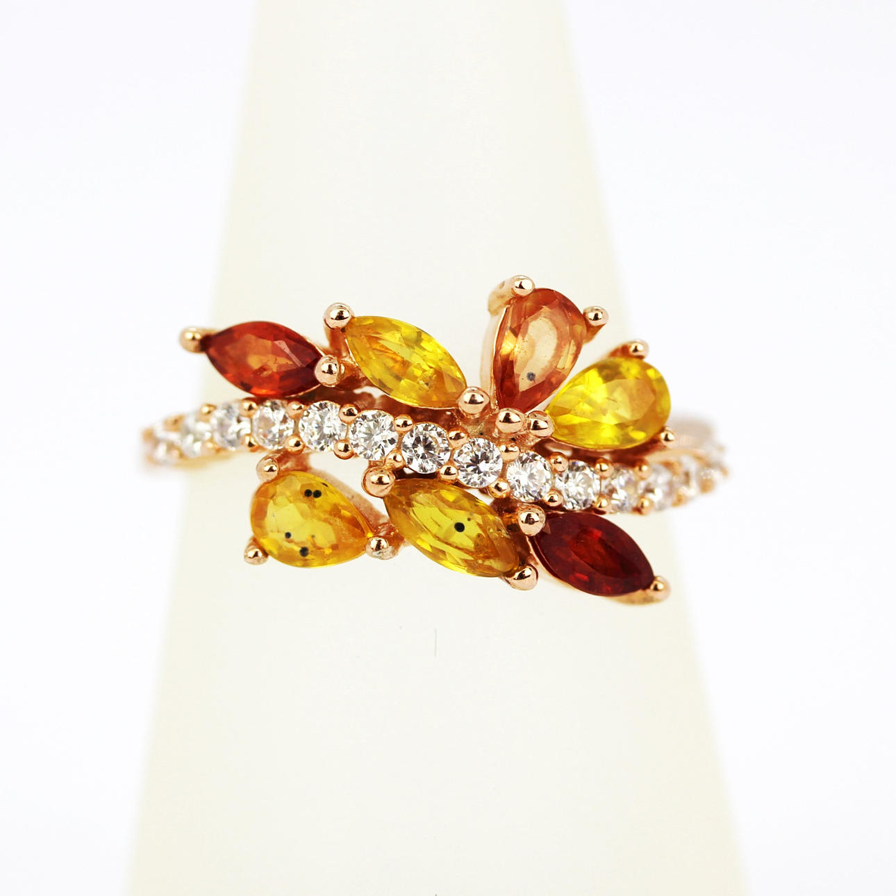 RING, förgylld 925 silver med fina orange och gula safirer med små vita stenar, ring storlek N.5.