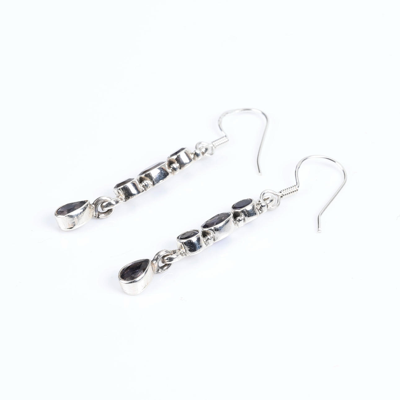Ett par örhängen i sterling silver med slipade kordieriter