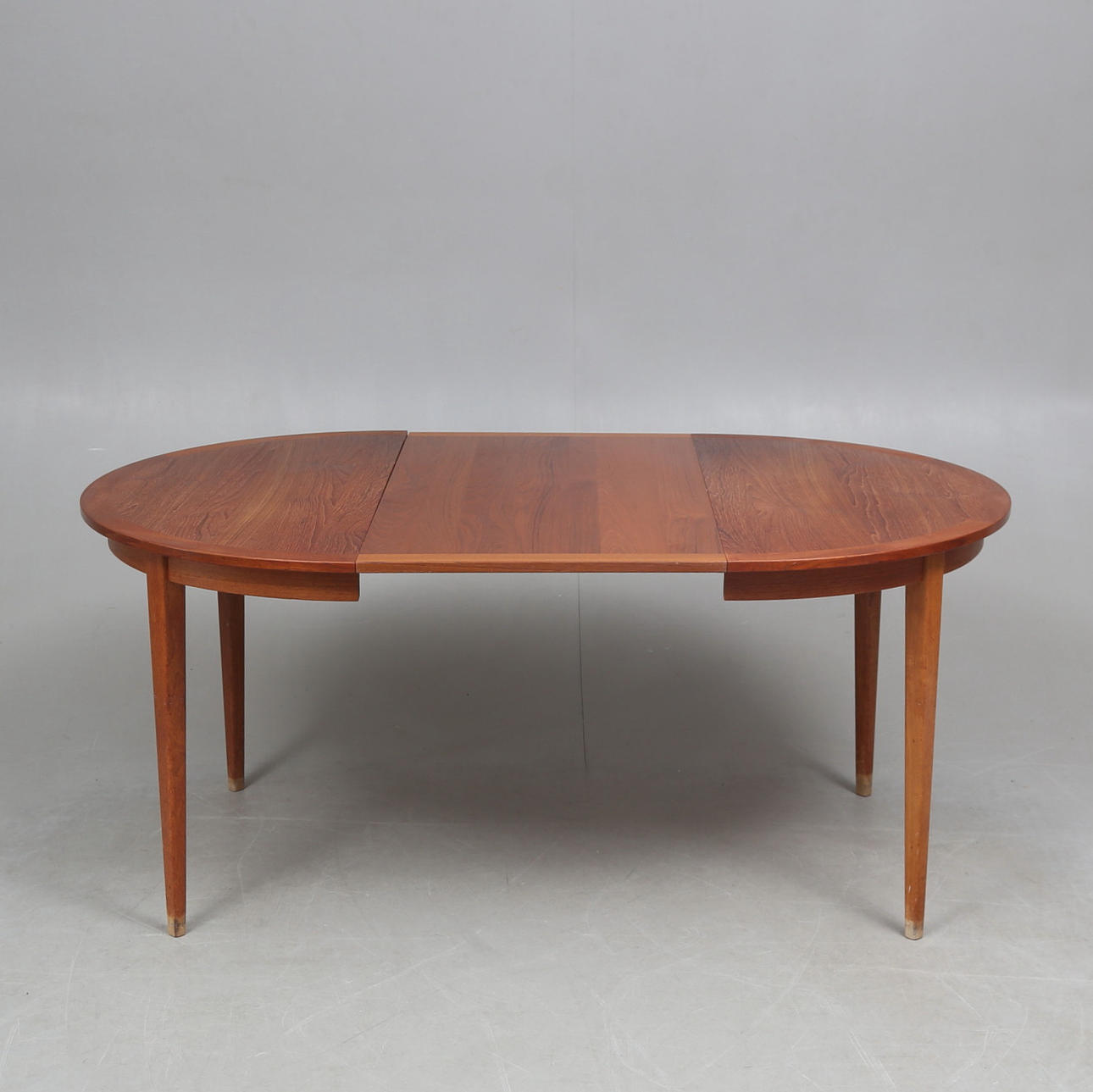 Teak, diameter ca. 111, höjd 73 cm. Mellanskiva, längd ca. 59 cm.