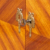 Åldersanpassade tecken på användning och gnidning, vänster dörr besvärlig, marmorlack tätning med partiella repor och gulning.