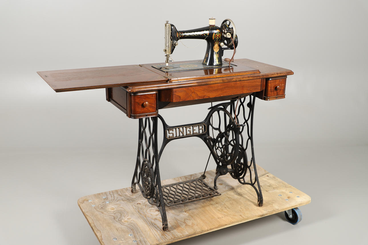 EN SÅNGERSYMASKIN PÅ STATIV.